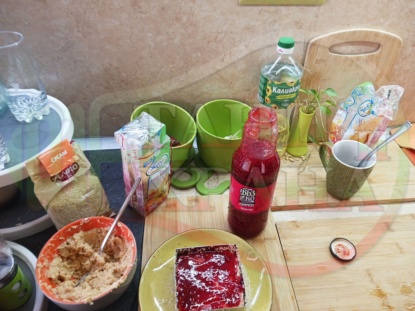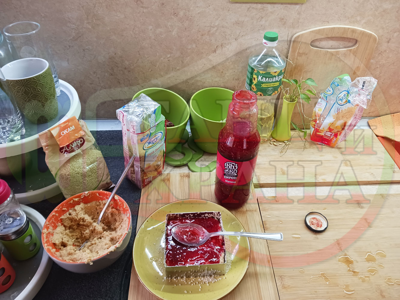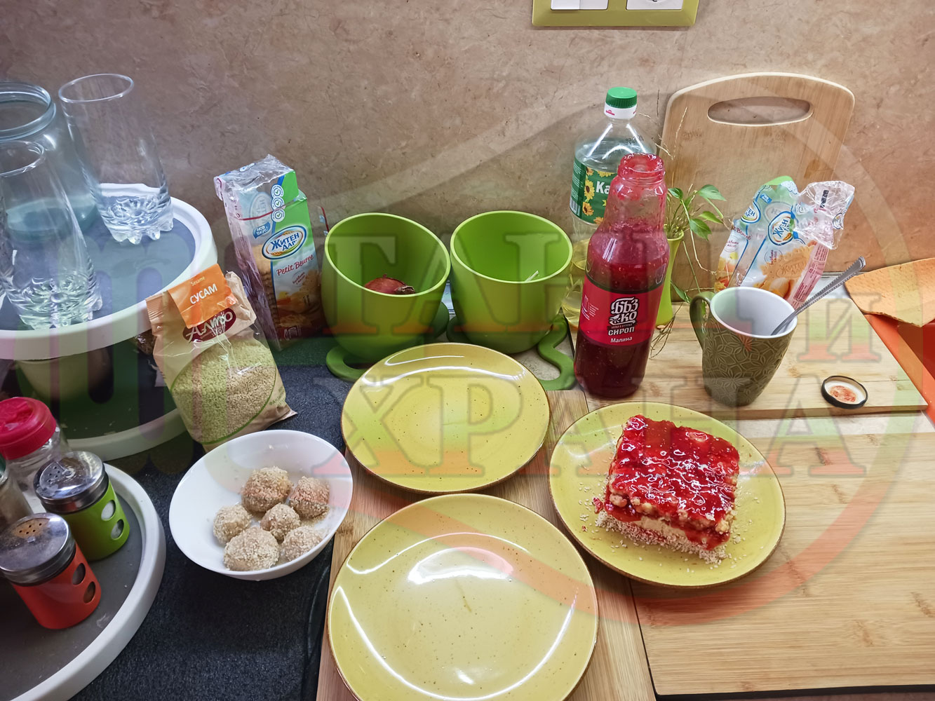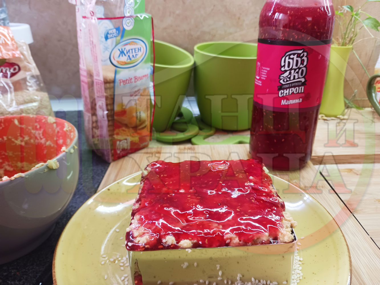 Спретнах изключително вкусна бисквитена торта с най-обичаните от мен плодове, макар и под формата на сироп. Оформих няколко малиново бисквитени трюфели със суров сусам и отново се получи невероятно вкусно, вкусна, вкусотия (вкуснотия)...