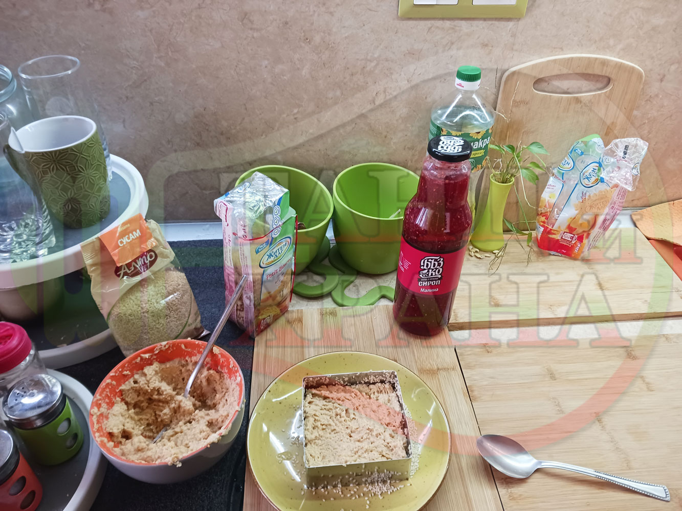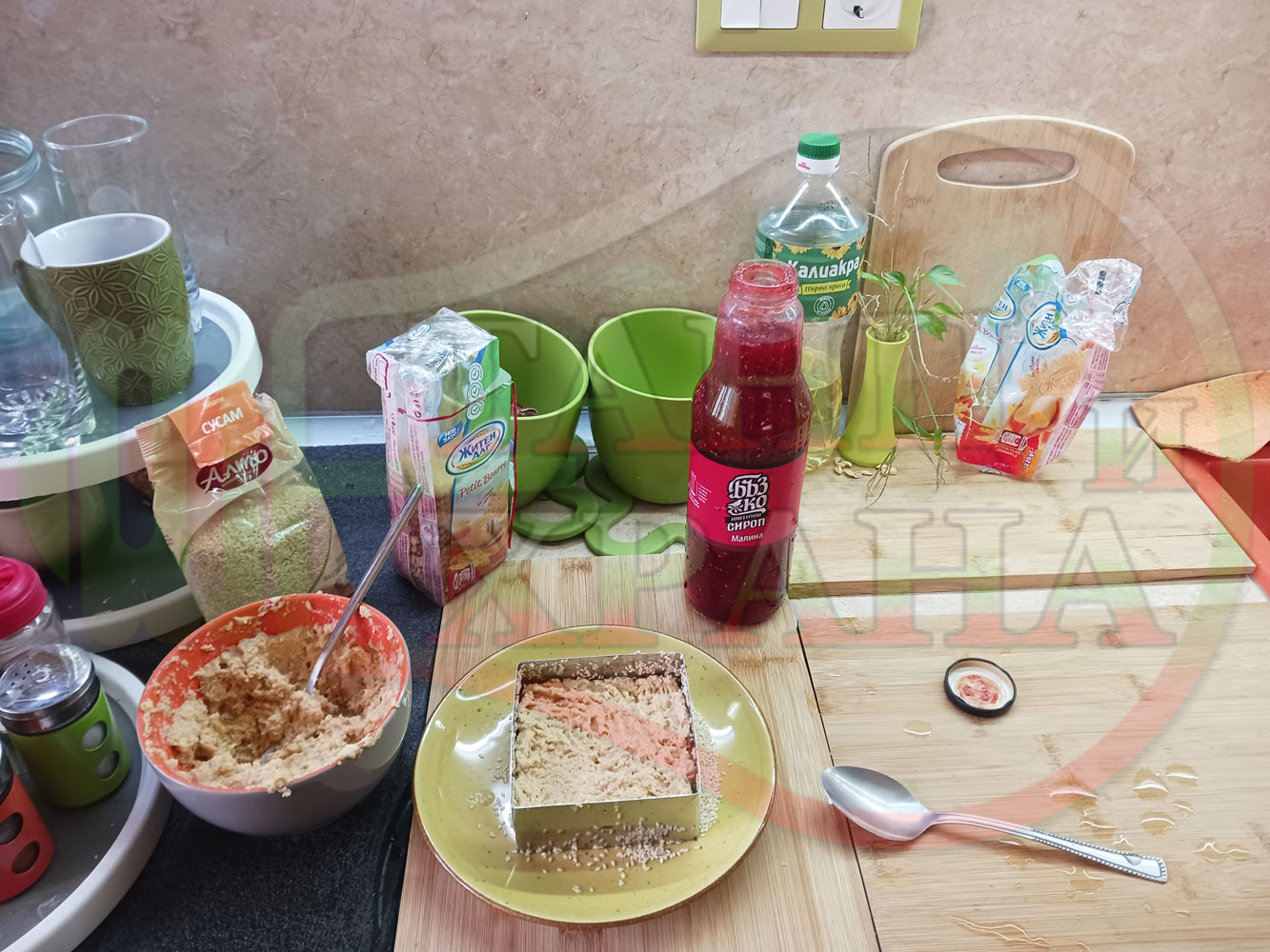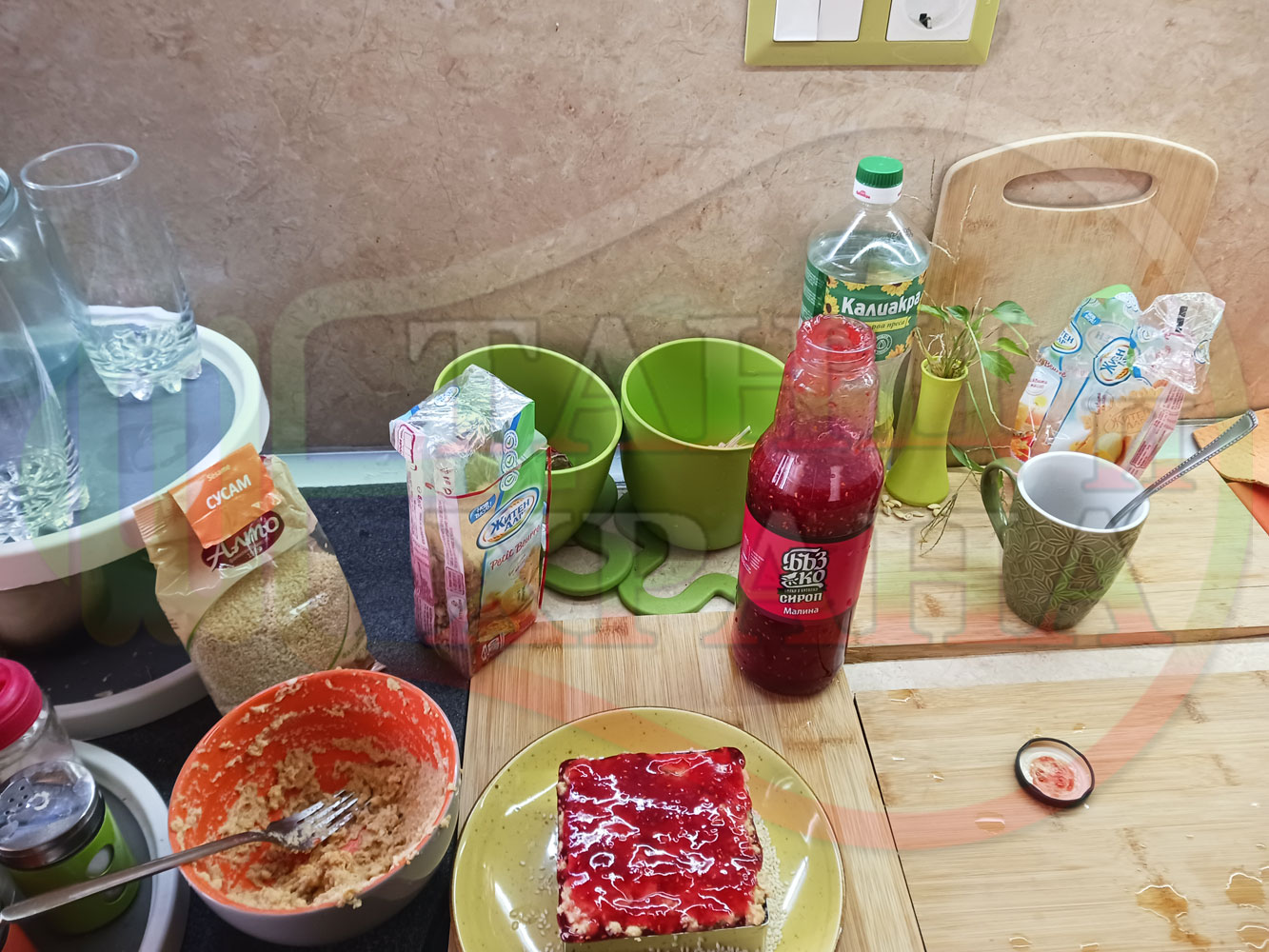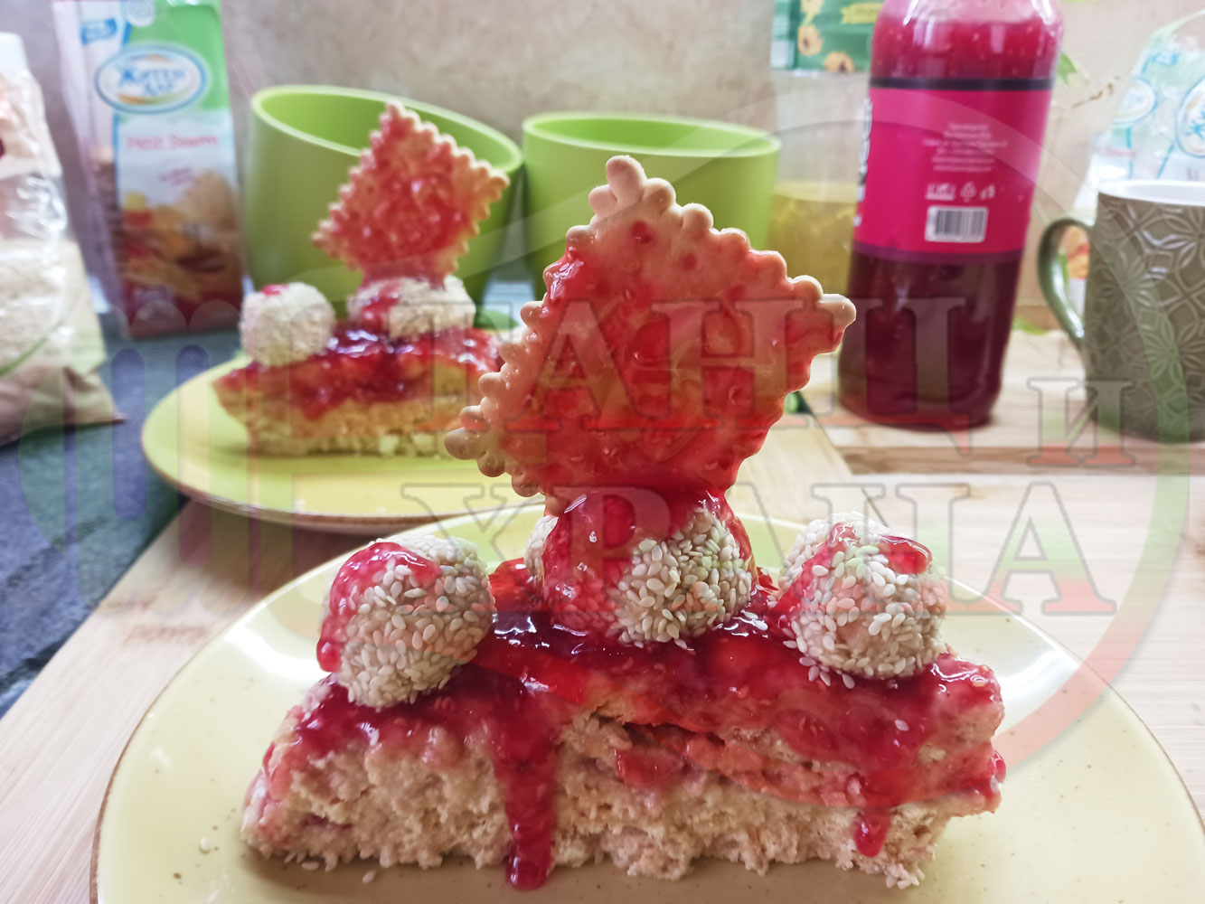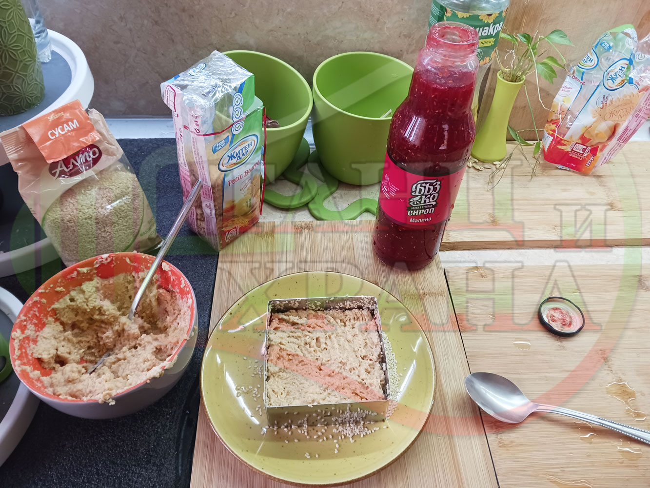 Спретнах изключително вкусна бисквитена торта с най-обичаните от мен плодове, макар и под формата на сироп. Оформих няколко малиново бисквитени трюфели със суров сусам и отново се получи невероятно вкусно, вкусна, вкусотия (вкуснотия)...