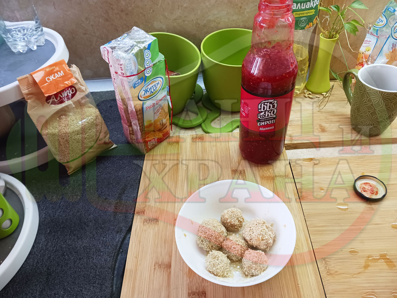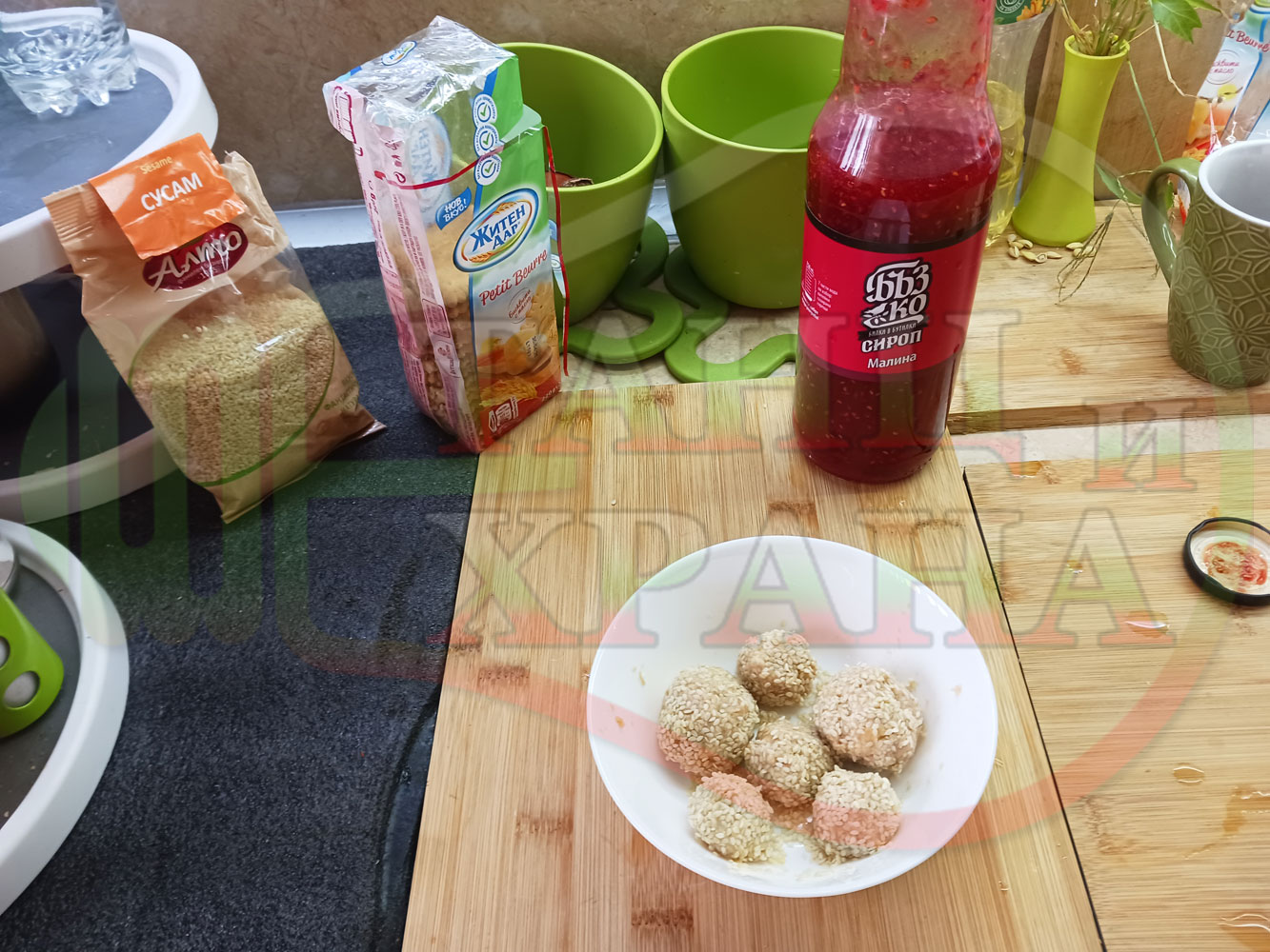ПРИГОТВЯНЕ НА МАЛИНОВО БИСКВИТЕНИТЕ ТРЮФЕЛИ СЪС СУРОВ СУСАМ