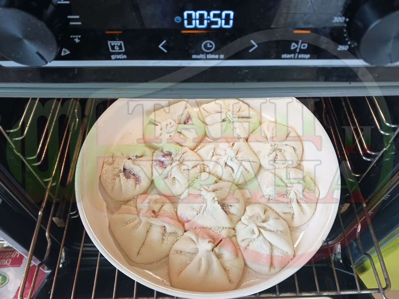 ВНИМАНИЕ: Фурните са различни и съответно времето за запичане е ориентировъчно. Наблюдавайте процеса на запичане и при необходимост, покрийте с хартия или фолио за печене. За по-равномерно изпичане, покрийте тавата след 15-та минута от началото на зададеното време.