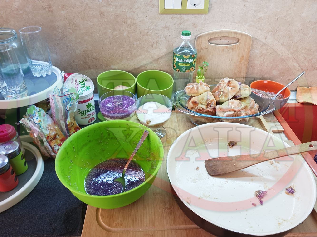 От останалия нишестен рядък крем, спретнах непостни млечни, бисквитени десерти... ![]()