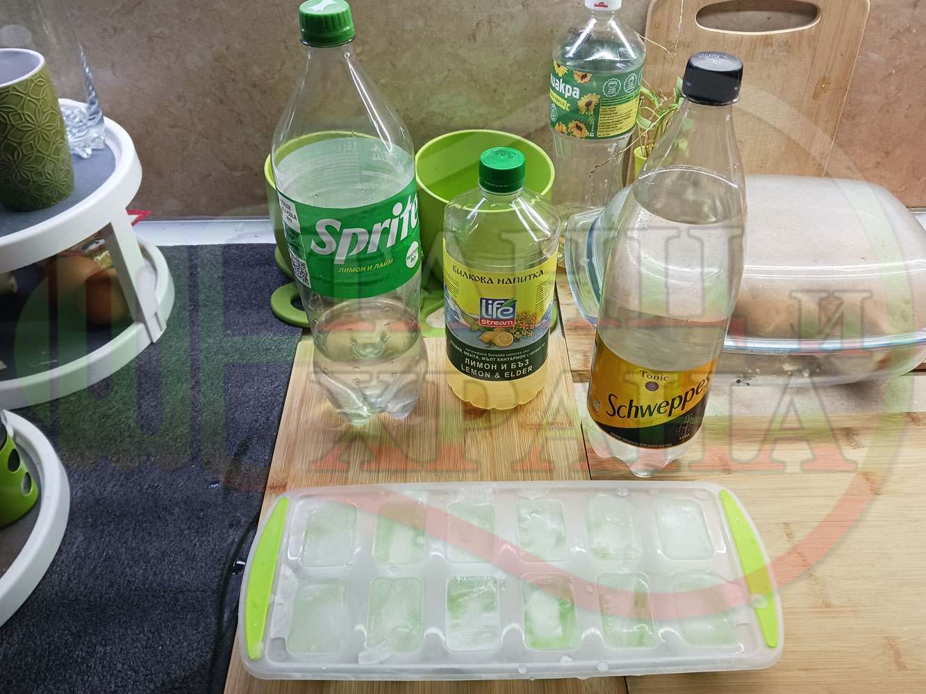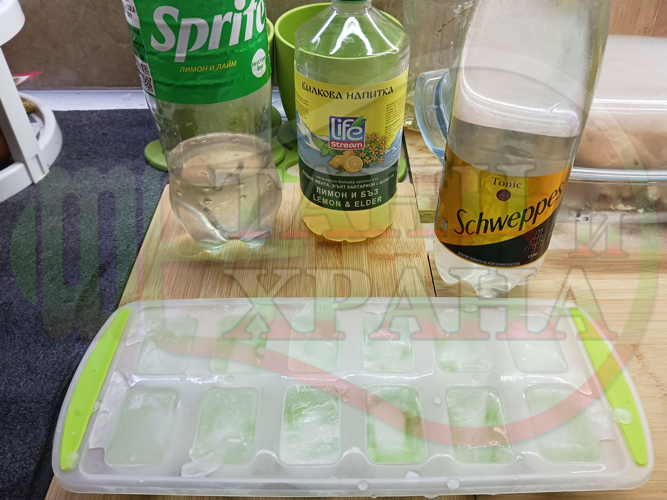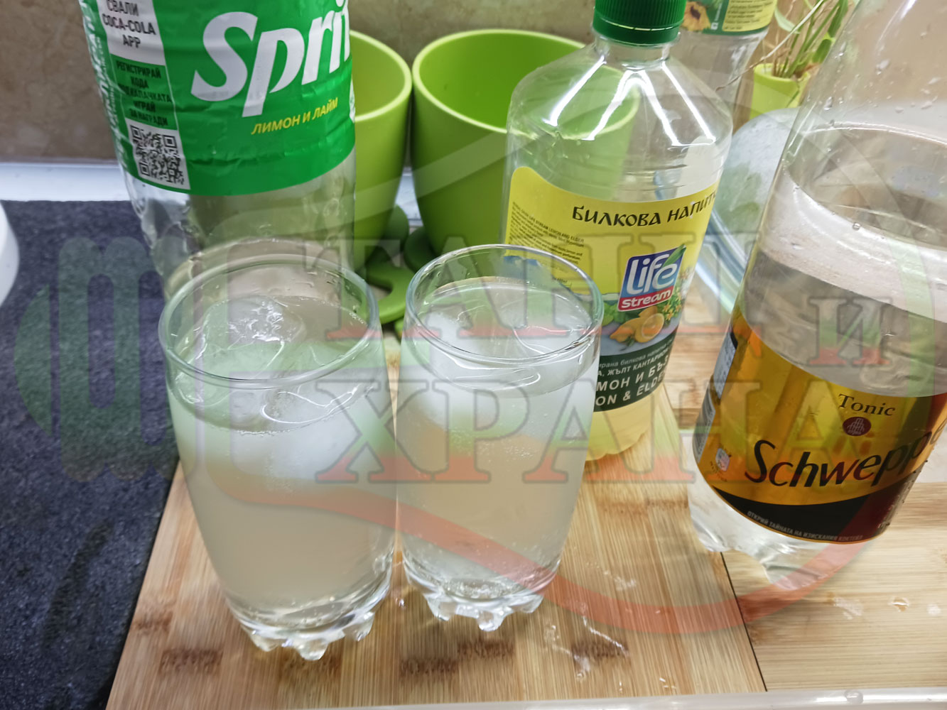 ПРОДУКТИ: Приблизителни количества за освежаваща газирана безалкохолна напитка "Спрайтбъзоволимонена тоникова" приготвена със спрайт, тоник и билков концентрат от лимон и бъз