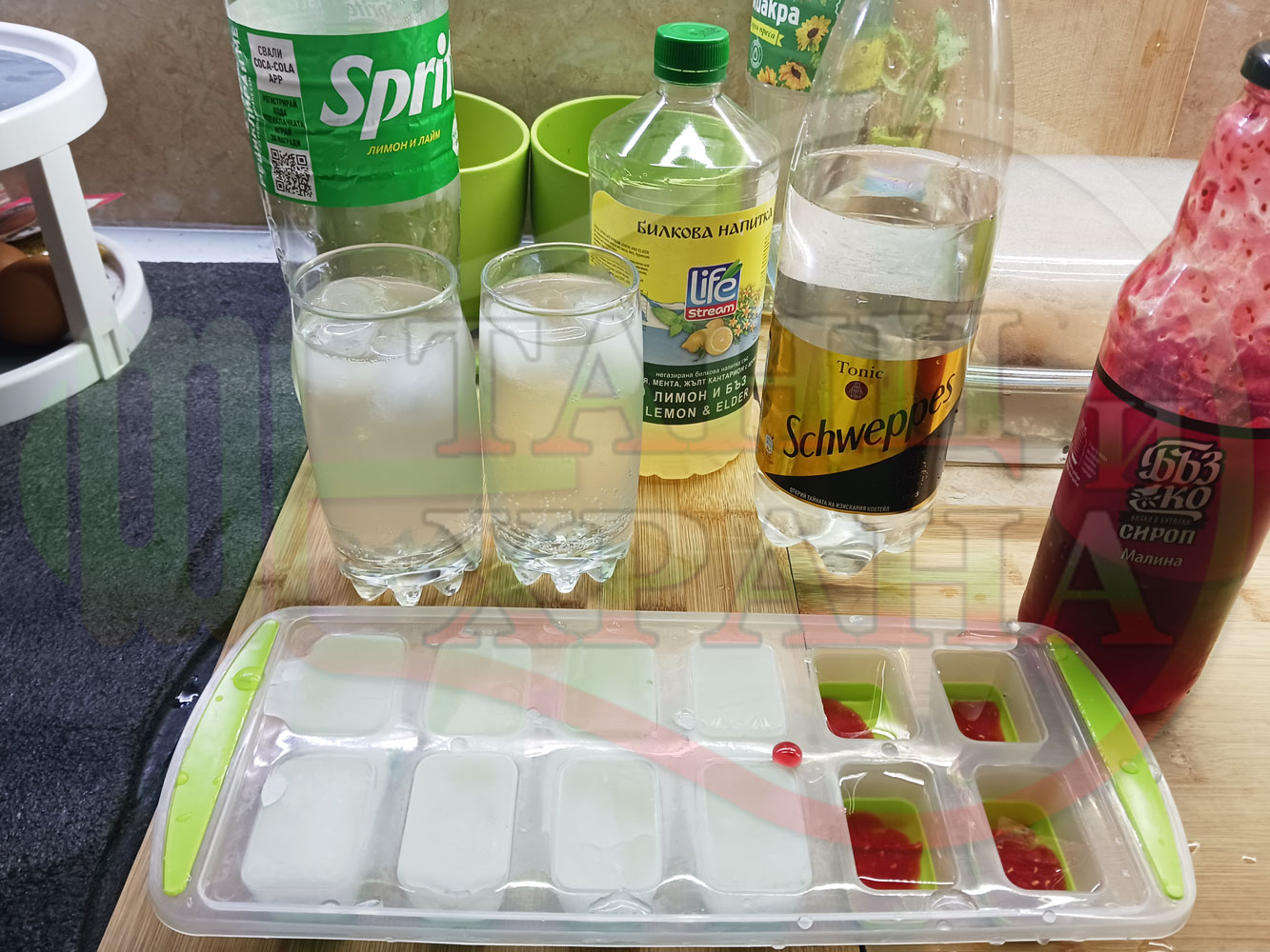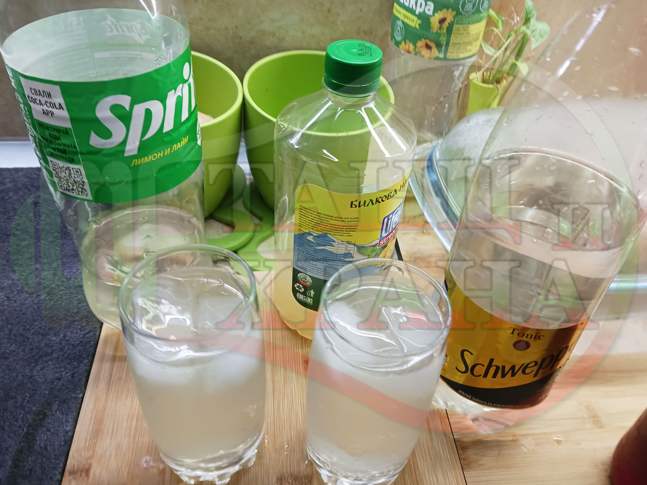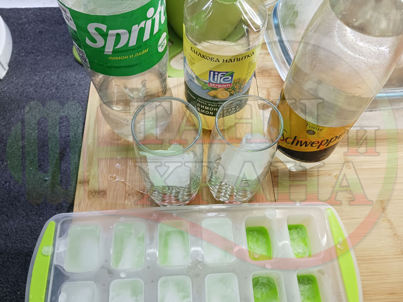ПРОДУКТИ: Приблизителни количества за освежаваща газирана безалкохолна напитка "Спрайтбъзоволимонена тоникова" приготвена със спрайт, тоник и билков концентрат от лимон и бъз
