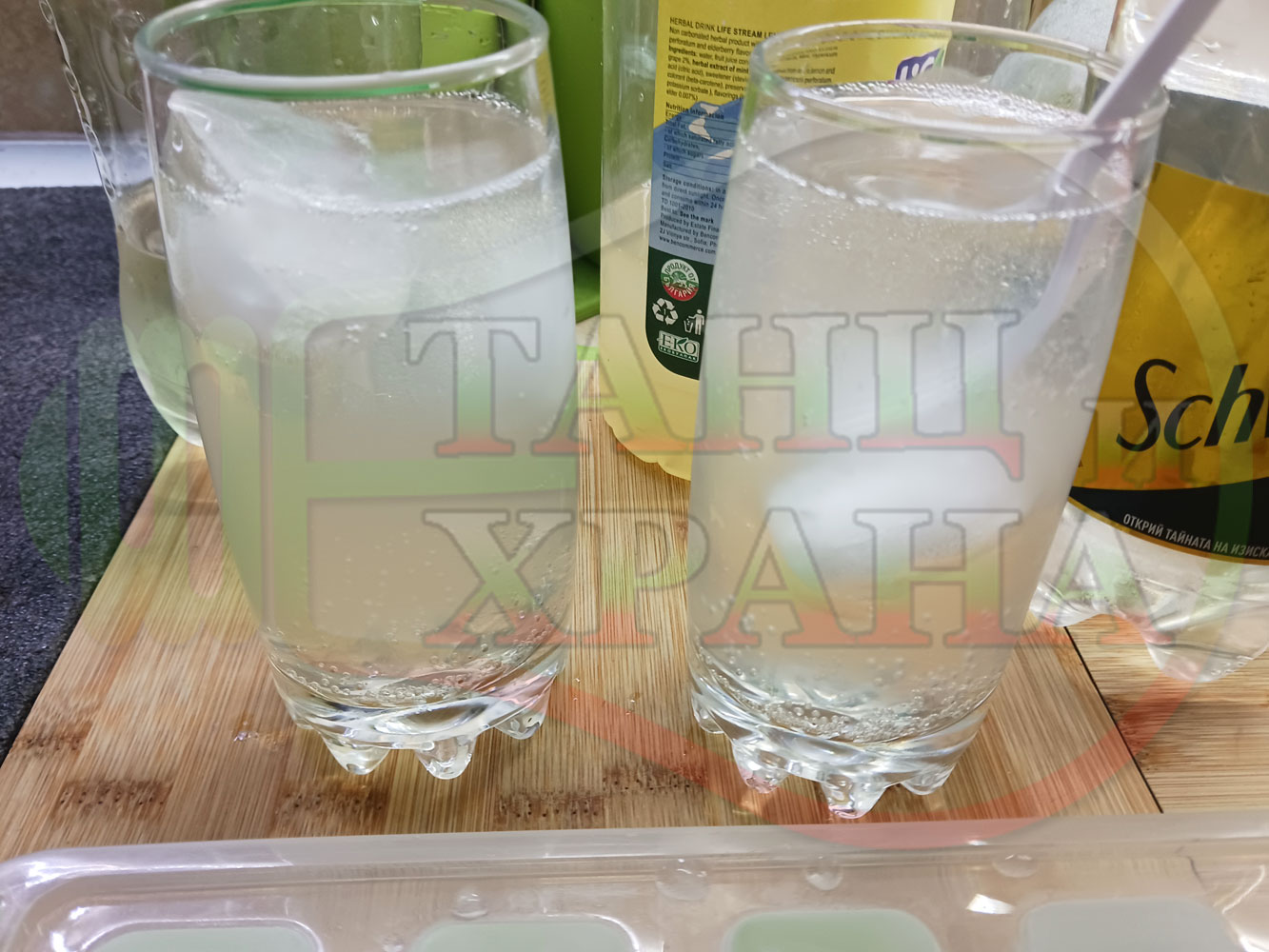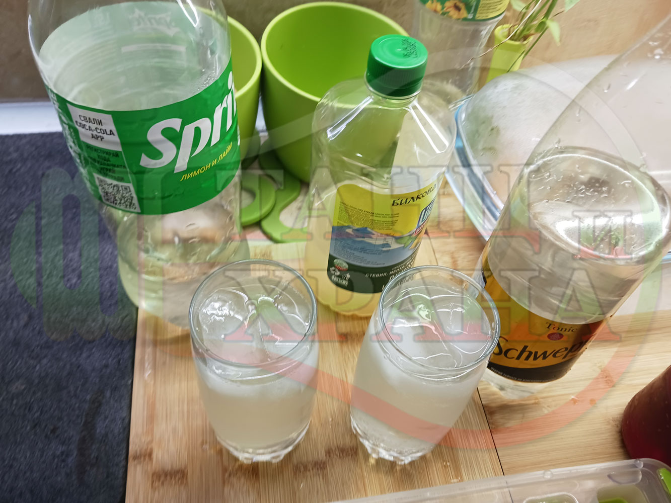 Освежаваща газирана безалкохолна напитка "Спрайтбъзоволимонена тоникова" приготвена със спрайт, тоник и билков концентрат от лимон и бъз