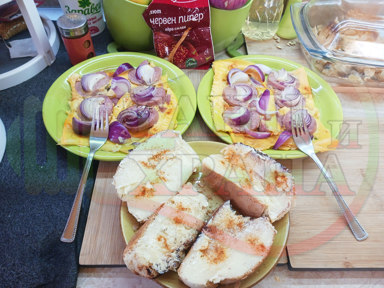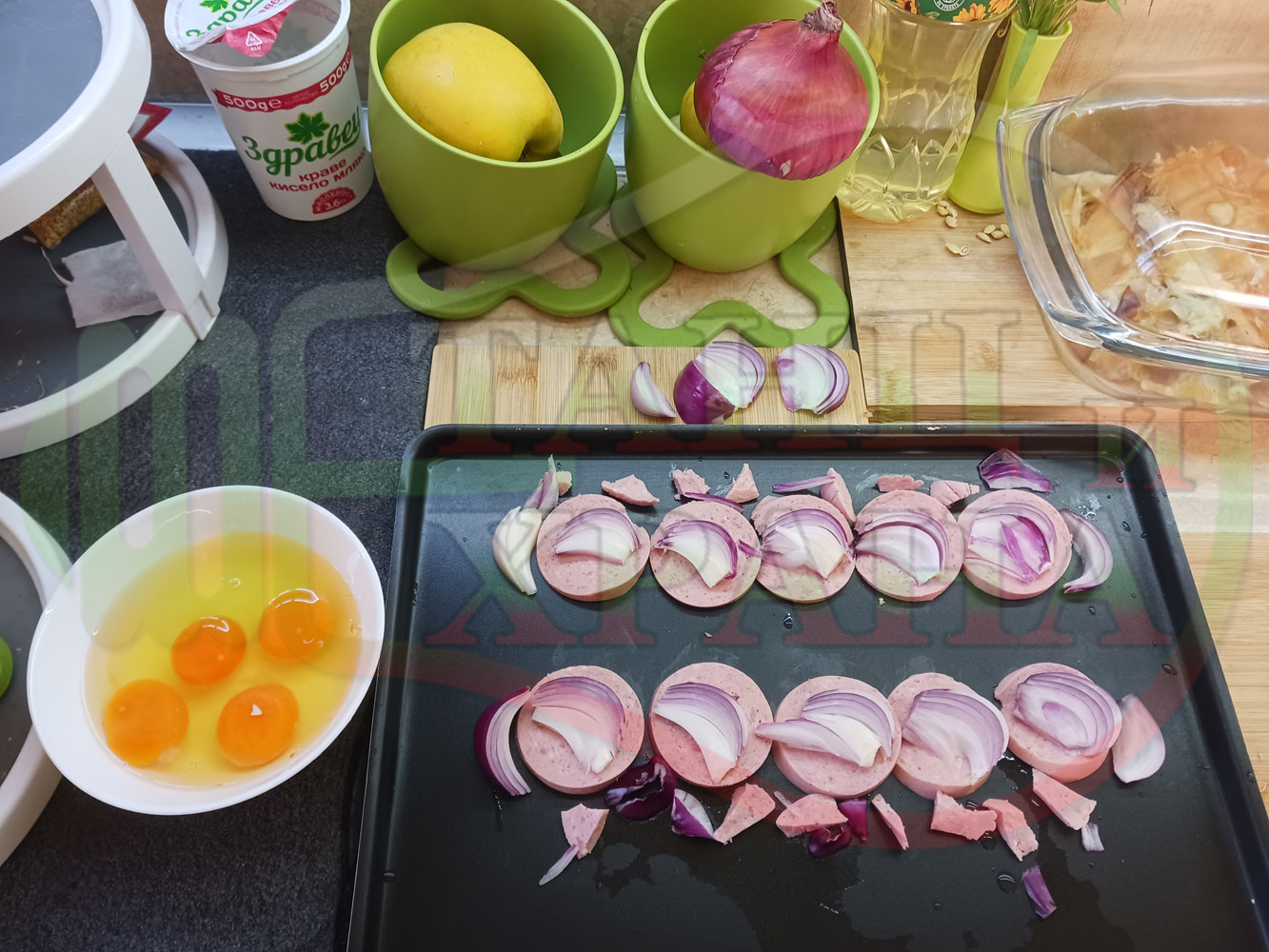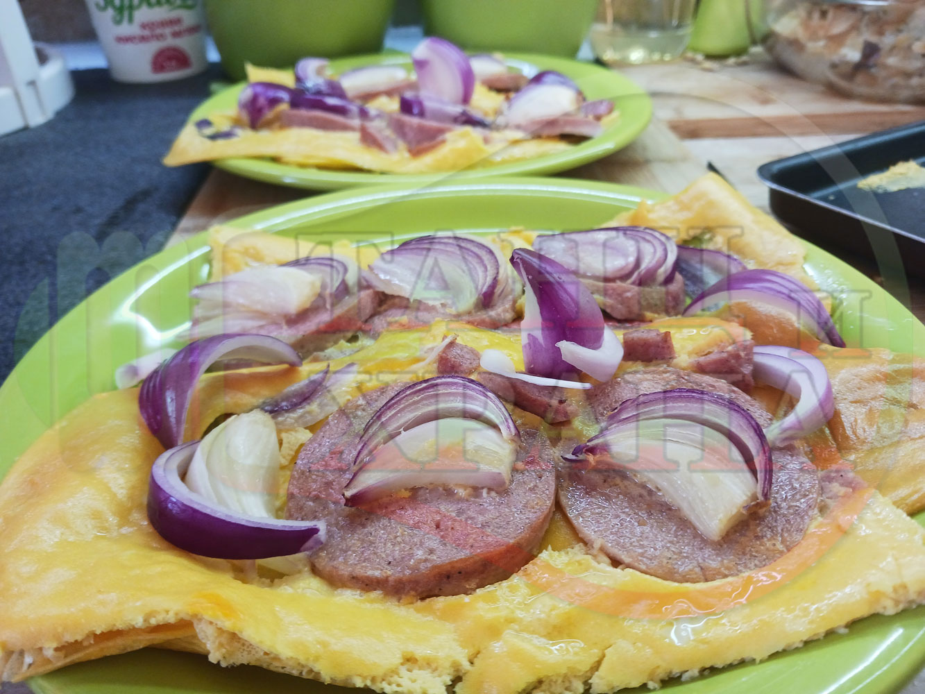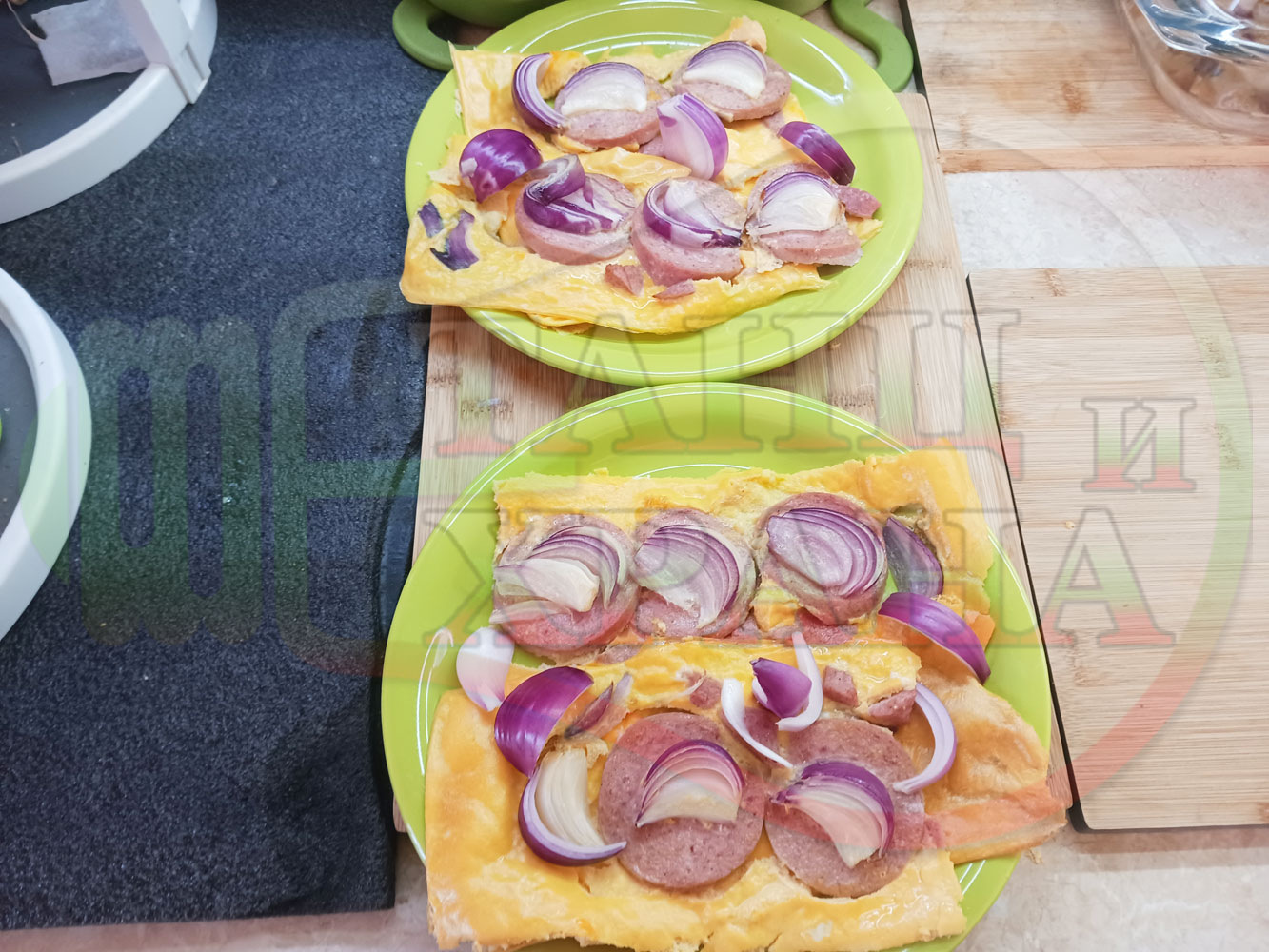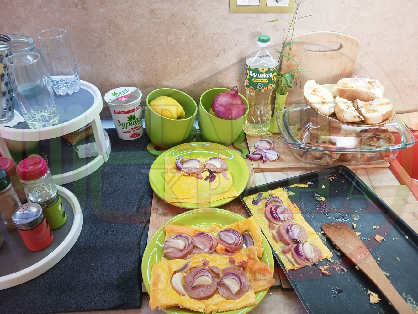 Толкова протеини, толкова вкус, толкова полезни съставки, включени в набързо спретнатата яйчена пита с така обичания още от детските ми години салам "Камчия"... аромат на запечен лук и салам се носи из кухнята... отново се получи голяма вкусно, вкусна, вкусотия (вкуснотия). ![]()