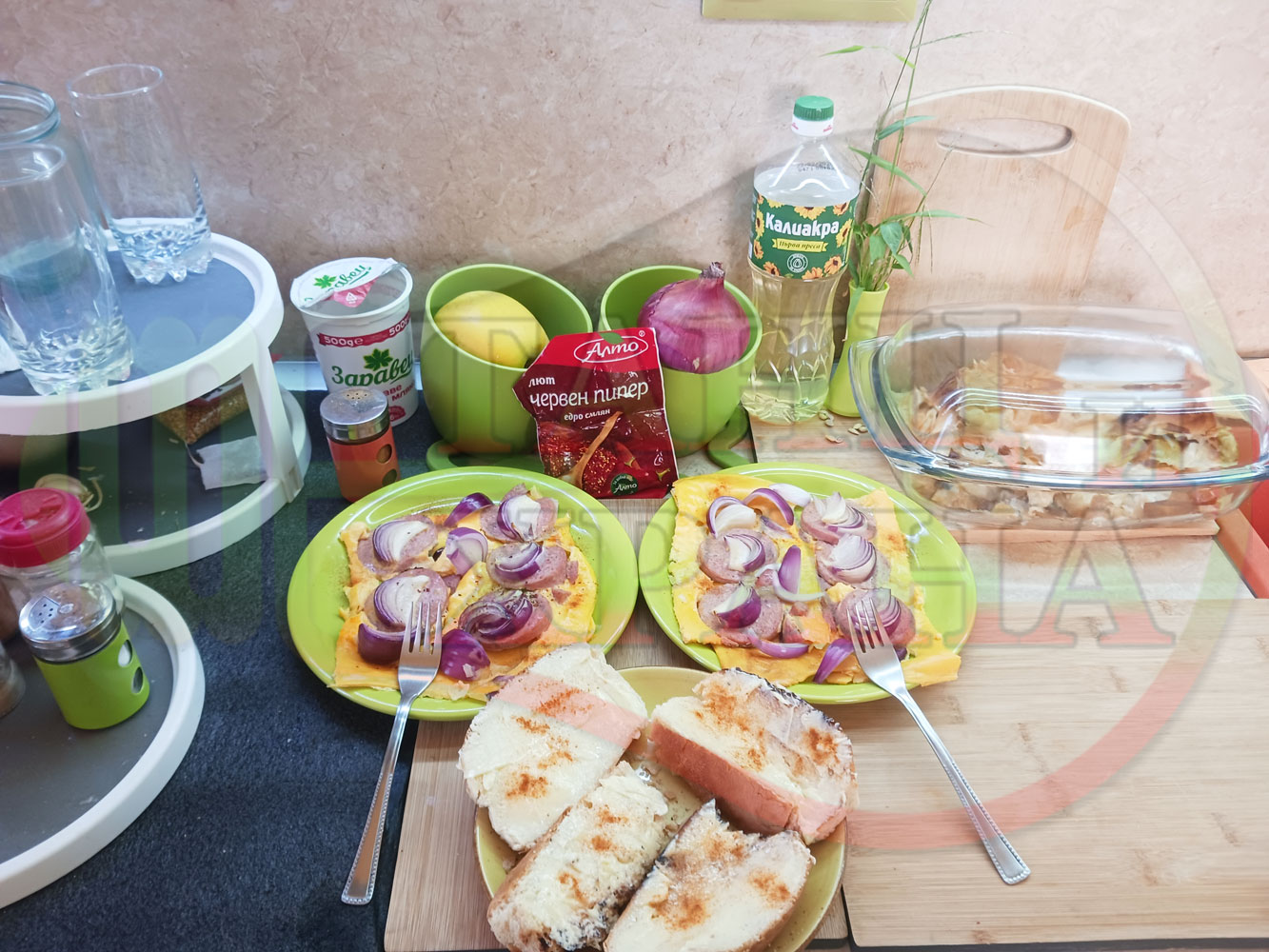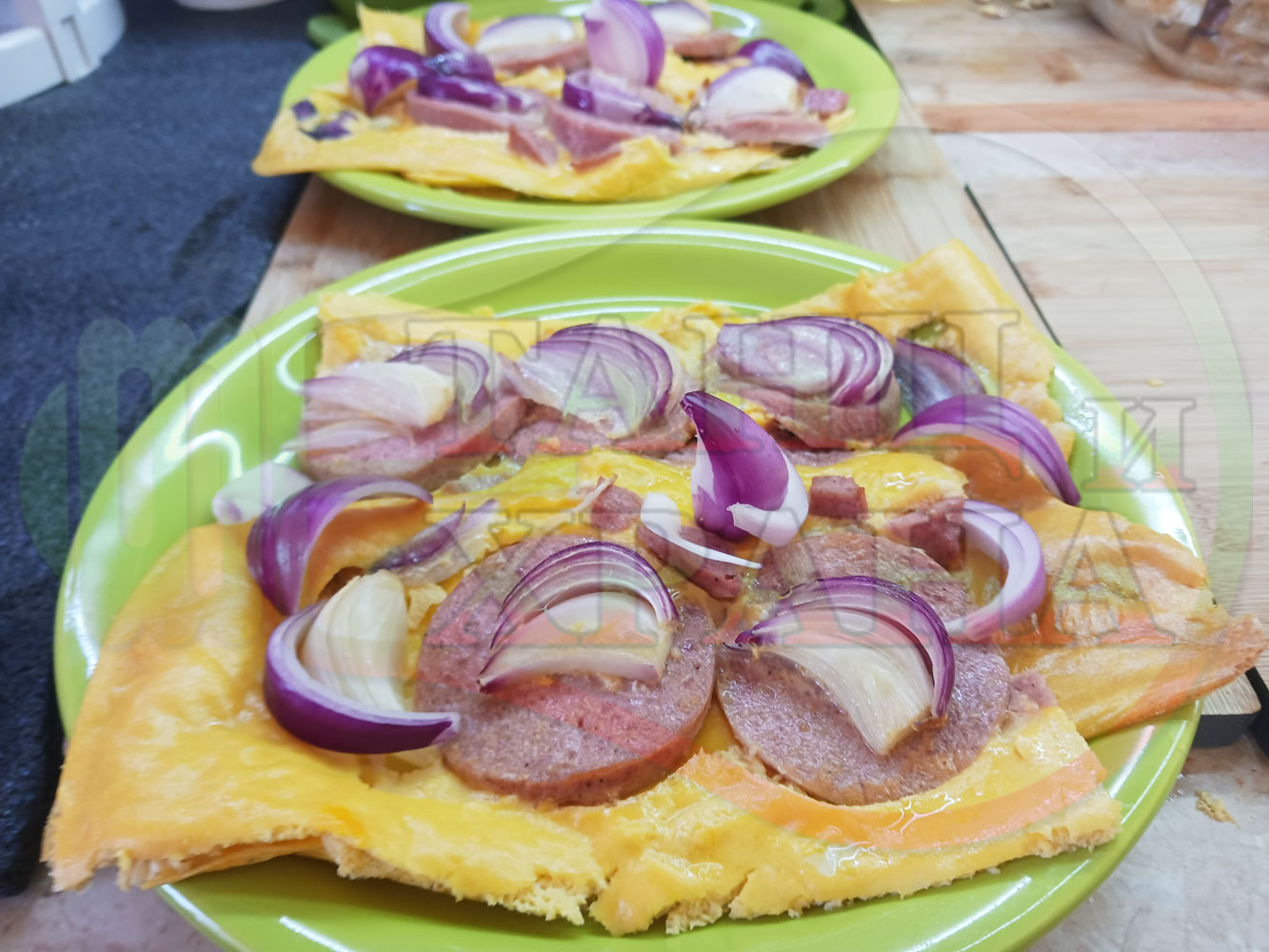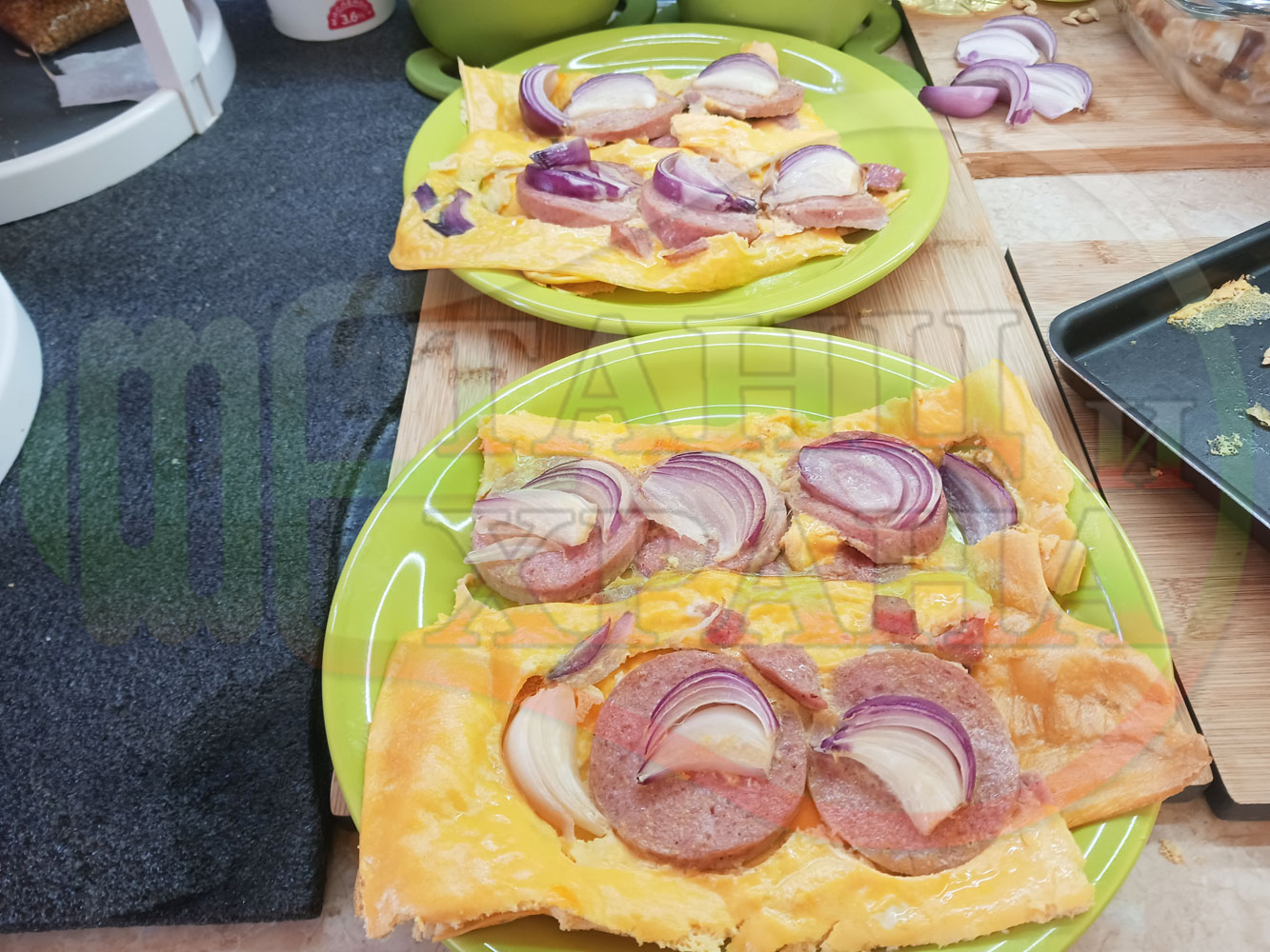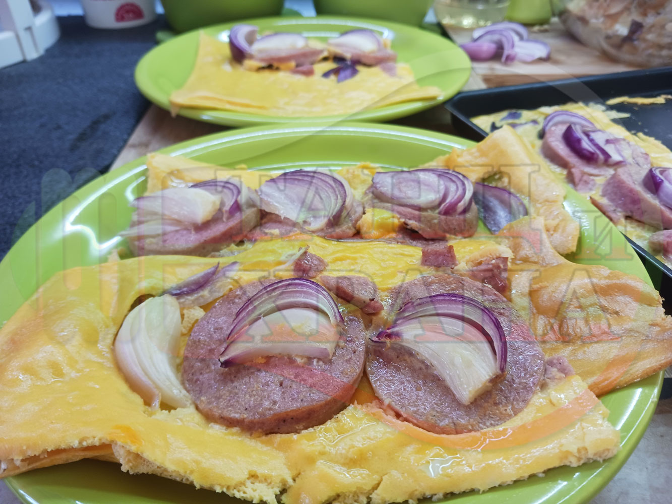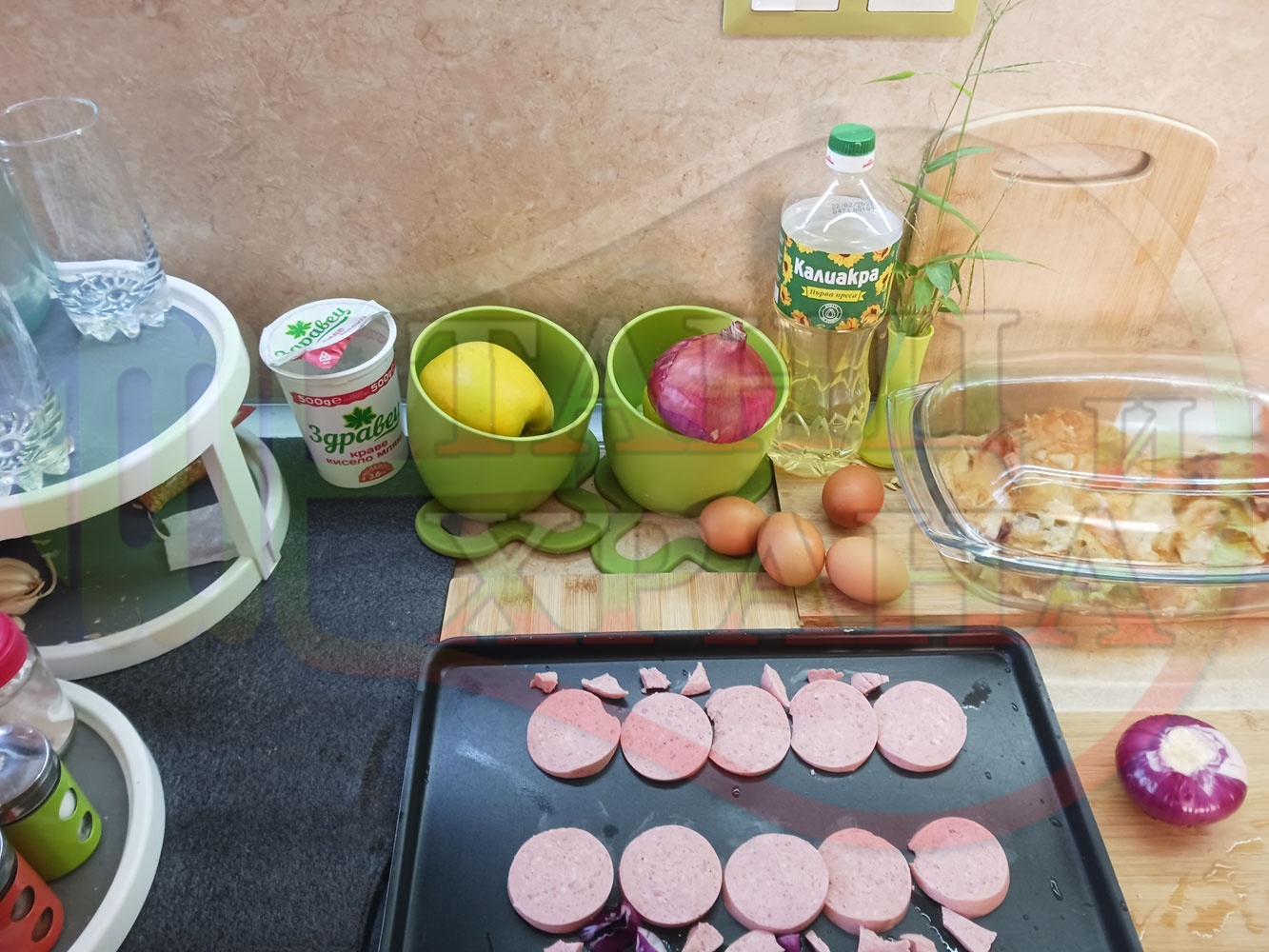 Толкова протеини, толкова вкус, толкова полезни съставки, включени в набързо спретнатата яйчена пита с така обичания още от детските ми години салам "Камчия"... аромат на запечен лук и салам се носи из кухнята... отново се получи голяма вкусно, вкусна, вкусотия (вкуснотия). ![]()