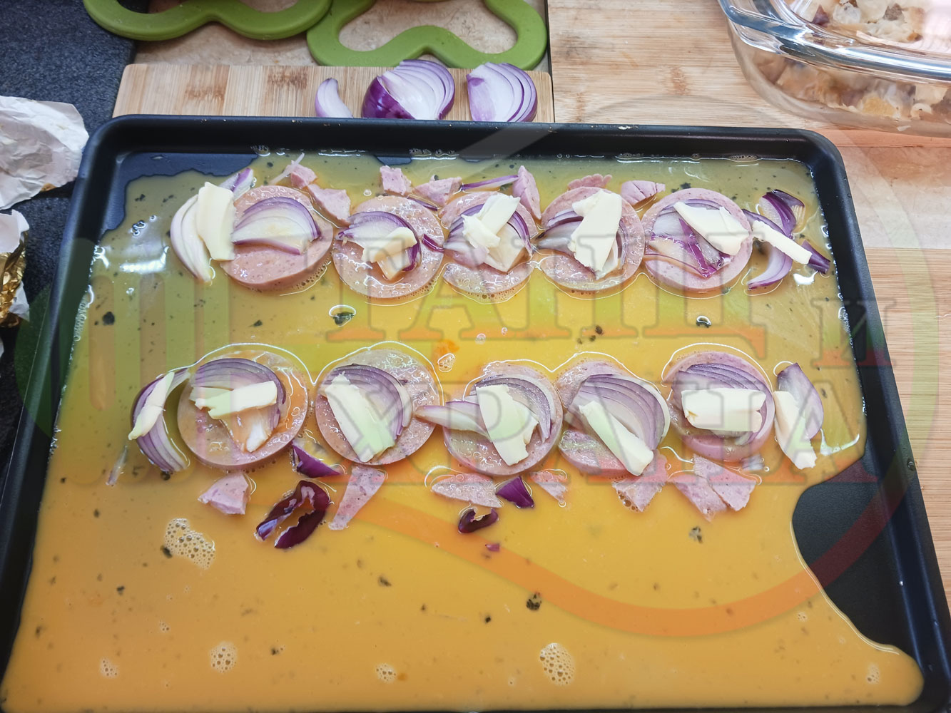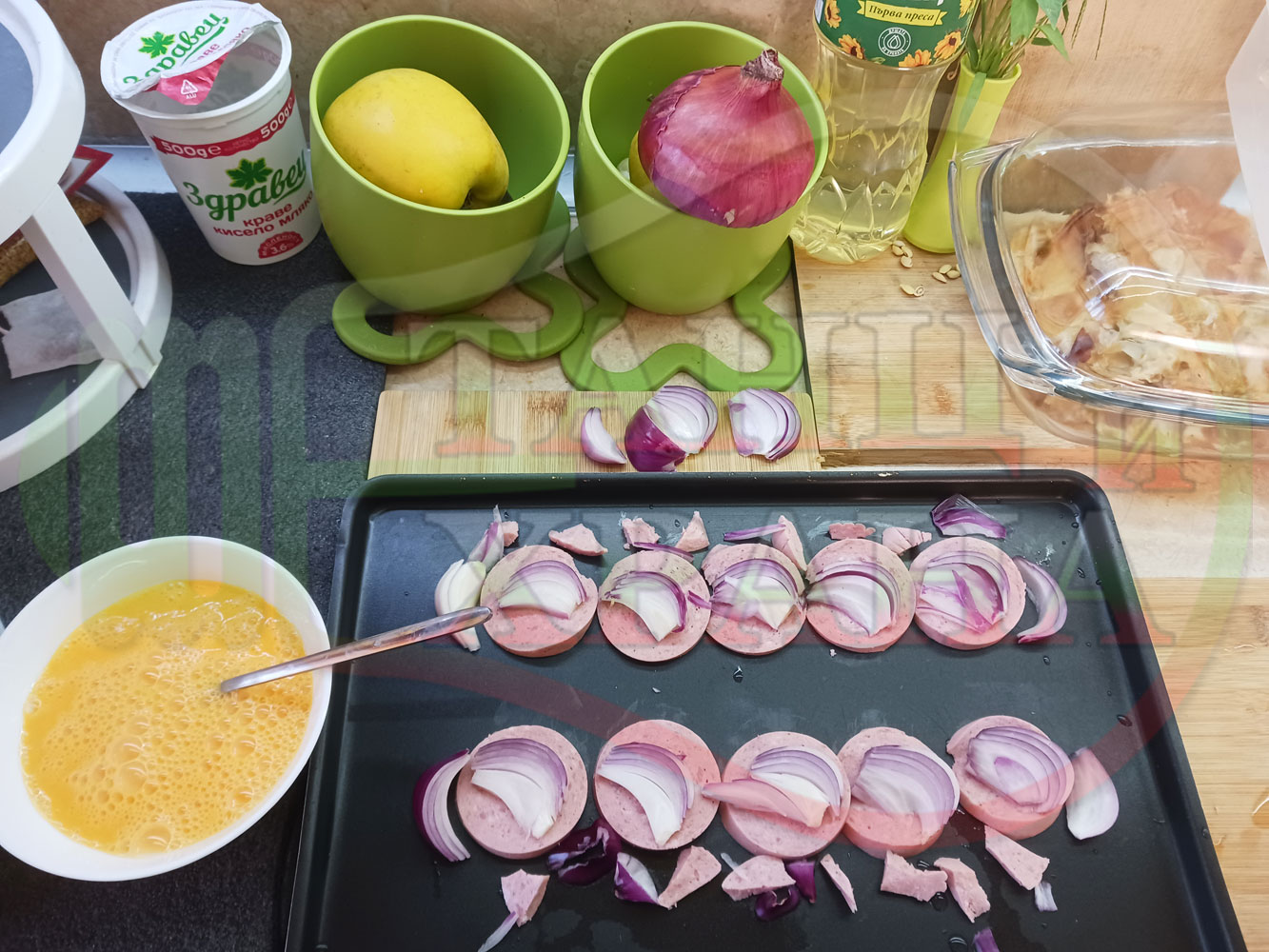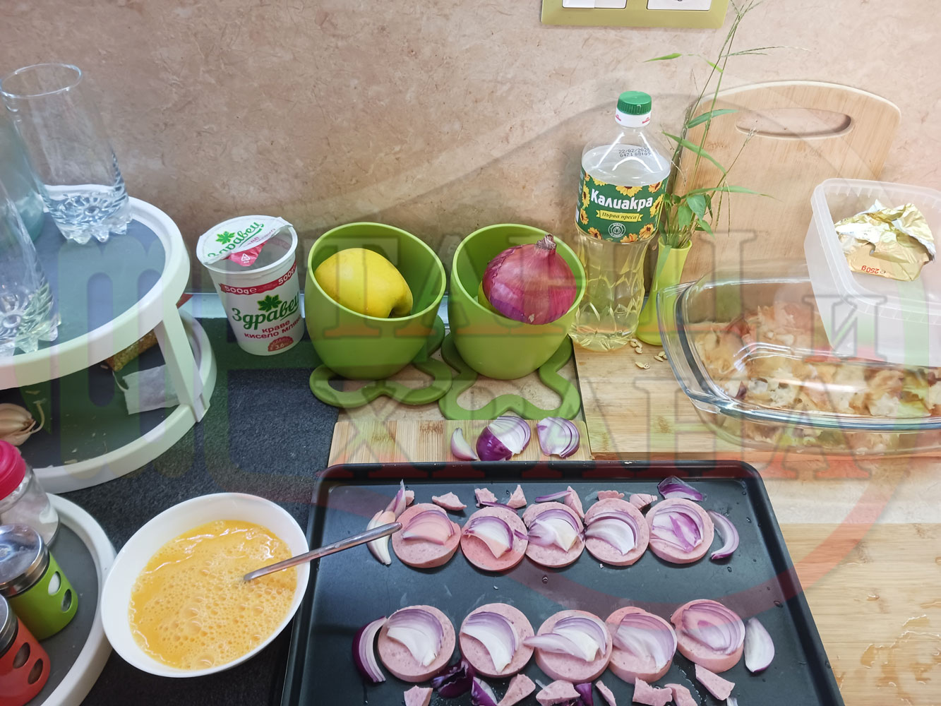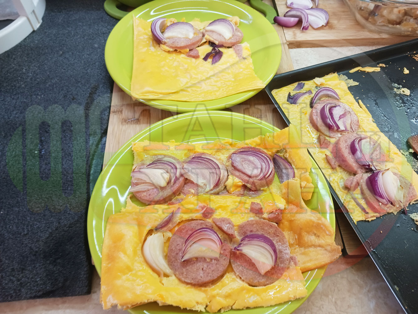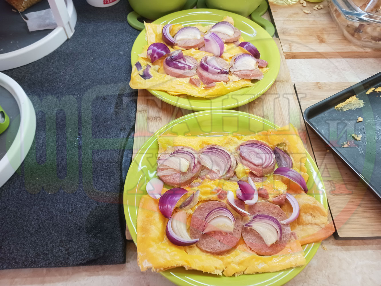 Толкова протеини, толкова вкус, толкова полезни съставки, включени в набързо спретнатата яйчена пита с така обичания още от детските ми години салам "Камчия"... аромат на запечен лук и салам се носи из кухнята... отново се получи голяма вкусно, вкусна, вкусотия (вкуснотия). ![]()