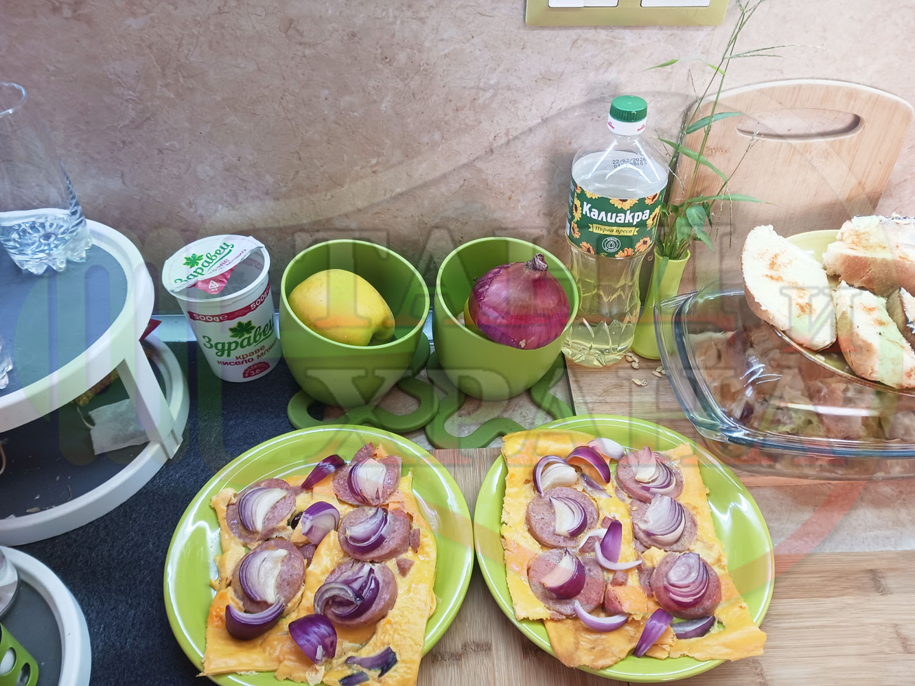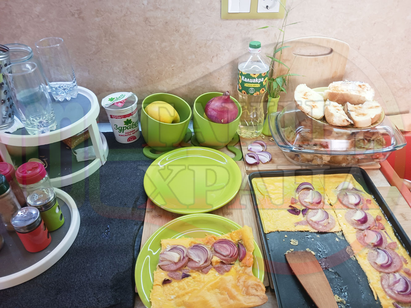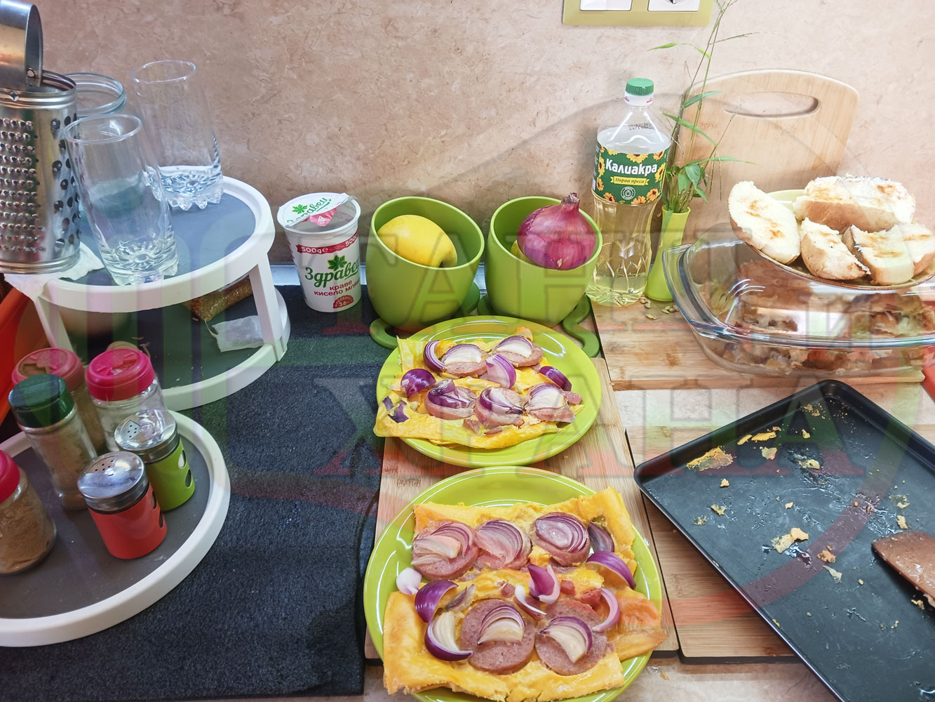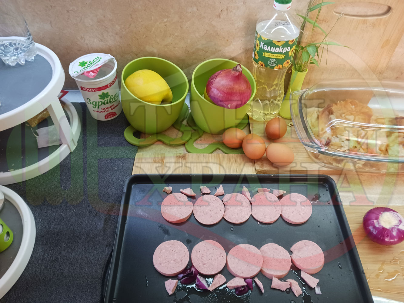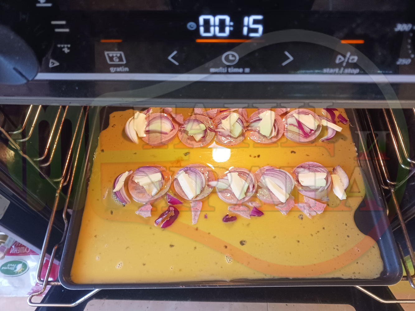 Толкова протеини, толкова вкус, толкова полезни съставки, включени в набързо спретнатата яйчена пита с така обичания още от детските ми години салам "Камчия"... аромат на запечен лук и салам се носи из кухнята... отново се получи голяма вкусно, вкусна, вкусотия (вкуснотия). ![]()