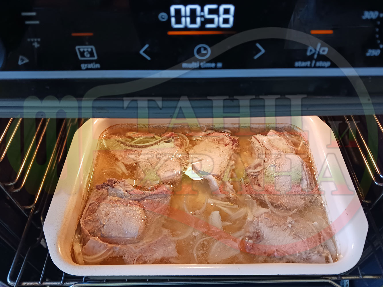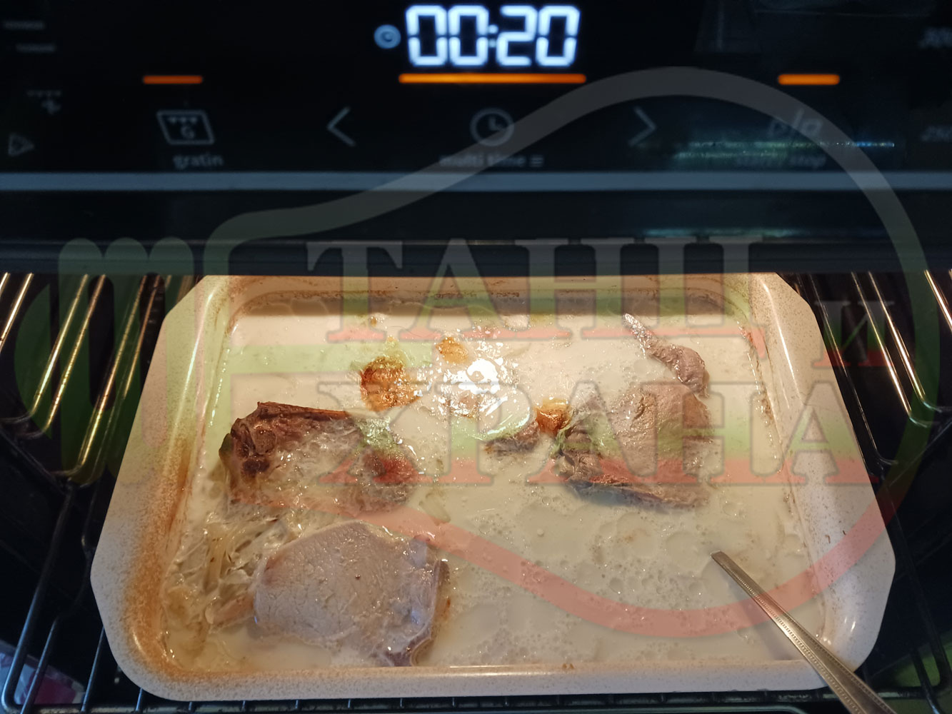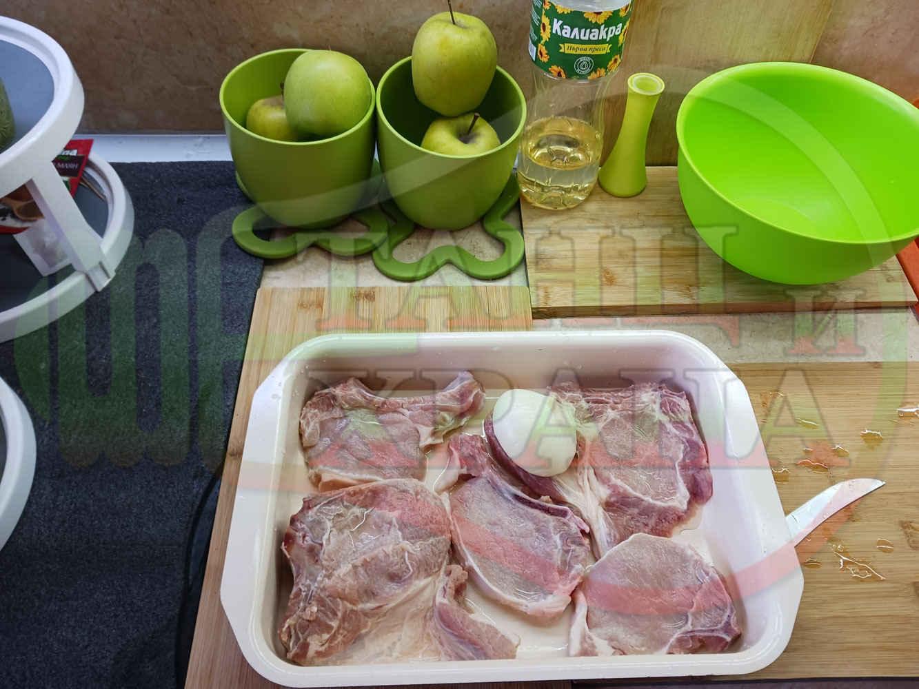 ВНИМАНИЕ: Фурните са различни и съответно времето за сваряване и леко запичане е ориентировъчно. Наблюдавайте процеса на запичане и при необходимост, покрийте с капак или отстранете тавата от фурната. Разбърквайте и обръщайте често пържолите за да се запекат равномерно от всички страни.