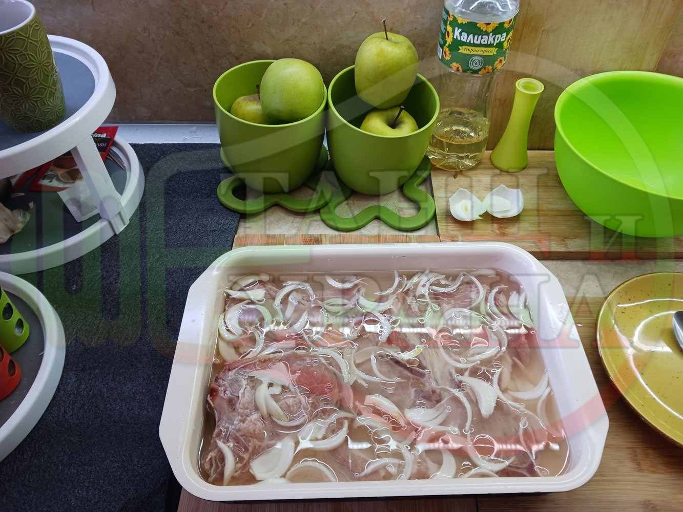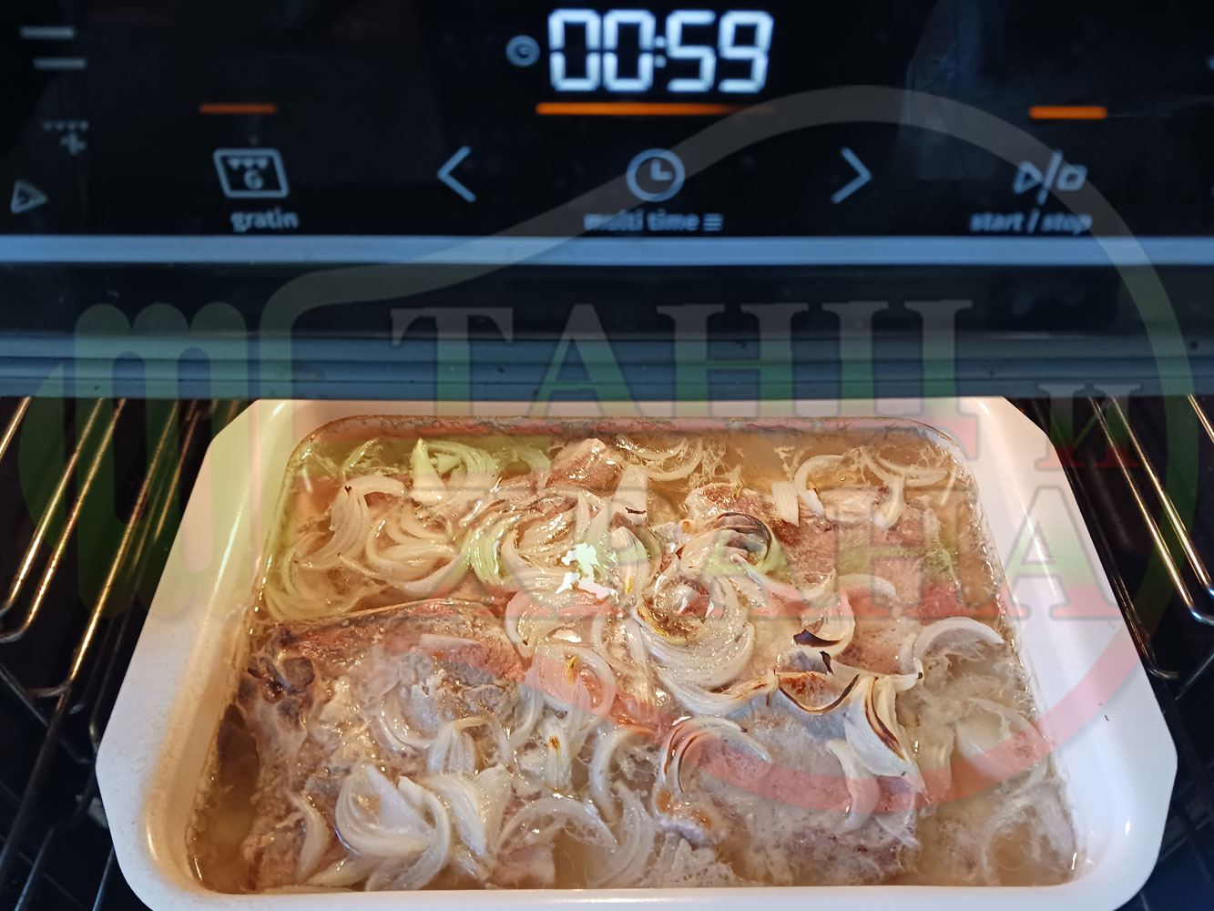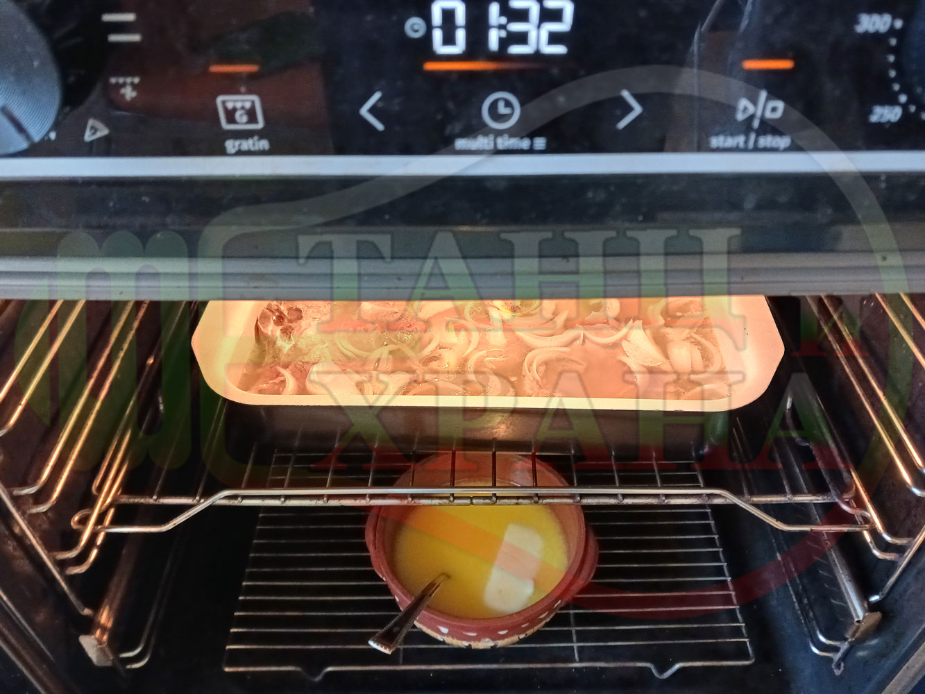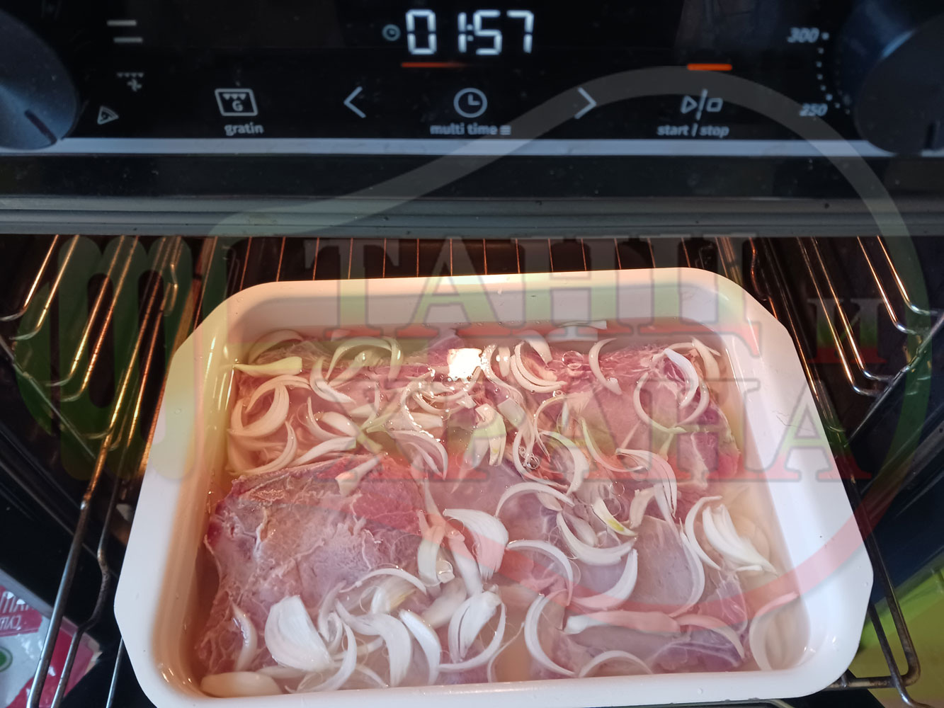 ВНИМАНИЕ: Фурните са различни и съответно времето за сваряване и леко запичане е ориентировъчно. Наблюдавайте процеса на запичане и при необходимост, покрийте с капак или отстранете тавата от фурната. Разбърквайте и обръщайте често пържолите за да се запекат равномерно от всички страни.