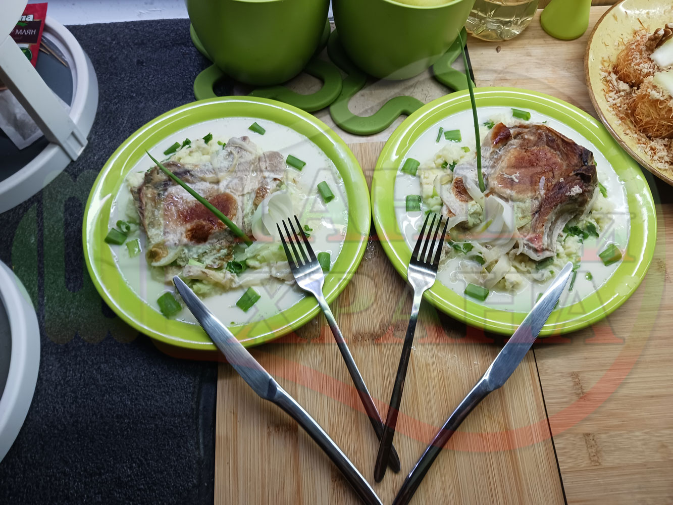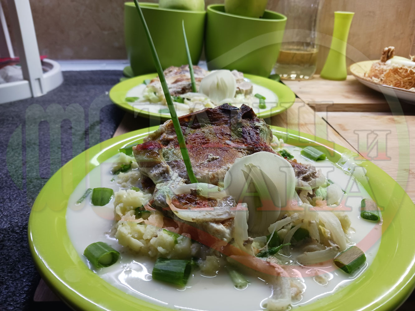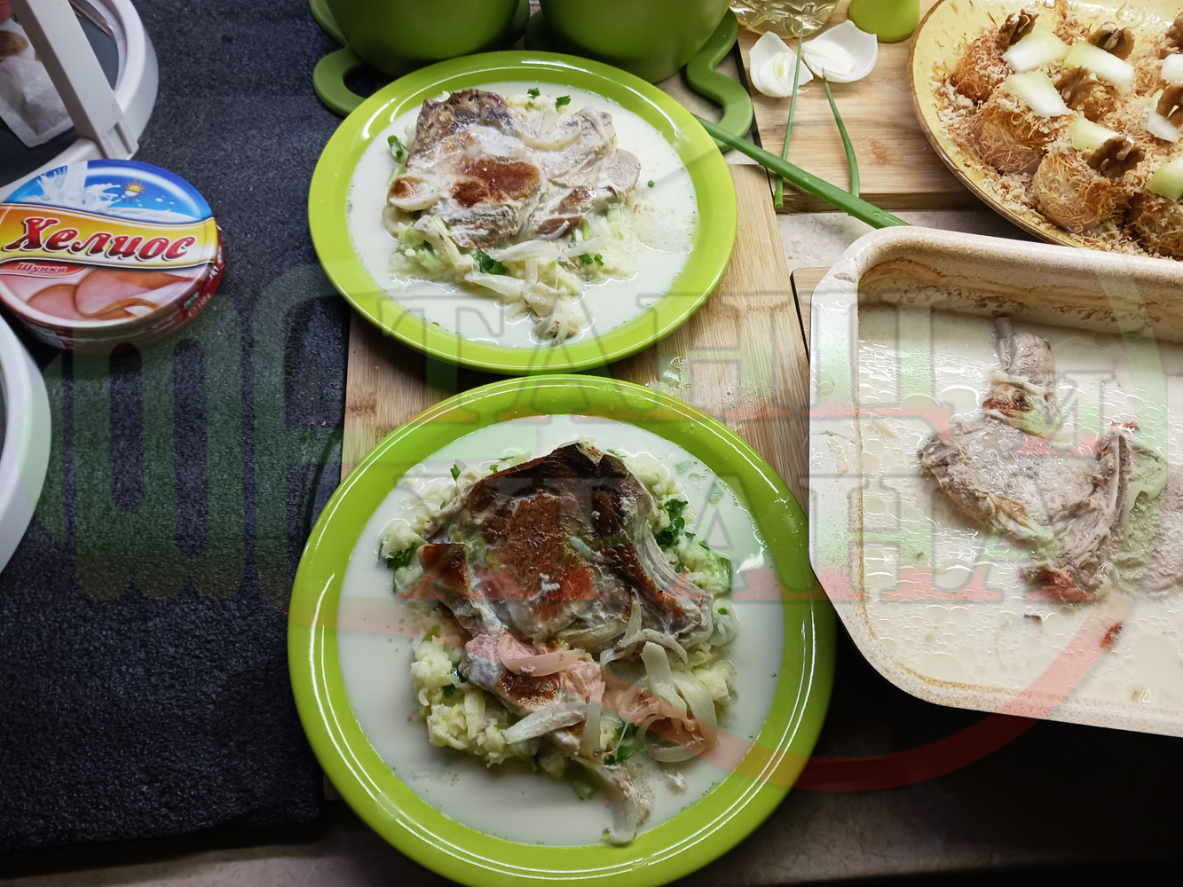 Толкова крехки, толкова млечни, толкова сочни и толкова вкусни пържоли, запечени на фурна с кромид лук и прясно мляко. Гарнирах пържолите в кладенче от пресен лук, топено сирене и млечен кашкавал, което леко се разтопява от горещото прясно мляко и дообогатява вкуса на пържолите с различни свежи вкусове и текстури в комбинация с прясното мляко се получи голяма вкусно, вкусна, вкусотия (вкуснотия)...![]()