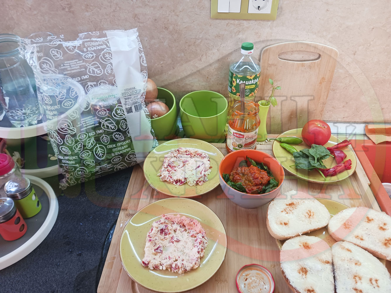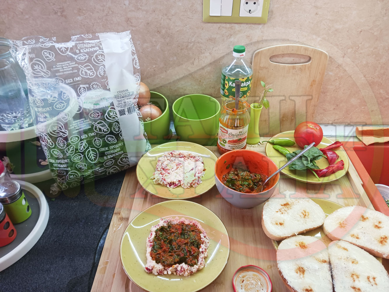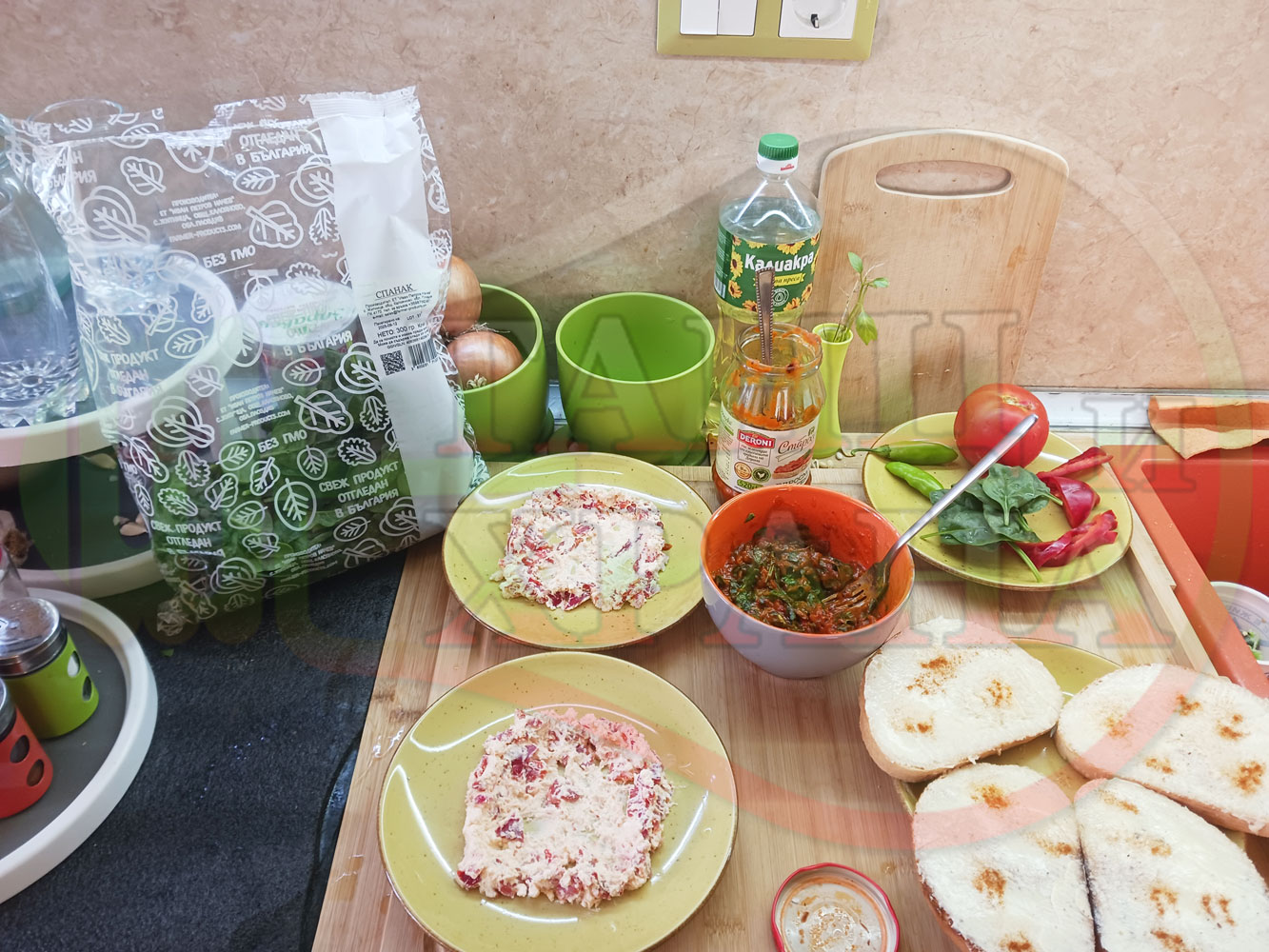 От известно време приготвям различни лютенични супи и салати с така обичаната още от детските ни години българска лютеница. Реших и този път да спретна за закуска полезна лютенична, сурова, гъста супа (да, сътворените от мен лютенични сурови супи ги измислих като вид полезна и засищаща закуска). Кой българин не е хапвал като дете филийки намазани с лютеница и сирене? Мисля, че няма такъв българин особено ако е отгледан и живял в България и така... спретнах лютенично спаначената супа със свеж спанак и едросмляна лютеница, която напоява кладенчетата от сиреновия крем, приготвен с червени пресни чушки. Мммм... отново се получи голяма вкусно, вкусна, вкусотия (вкуснотия)... и добавих пресни люти чушлета за леко пикантен, хрупкав, свеж и полезен акцент заедно с пресните домати ![]()