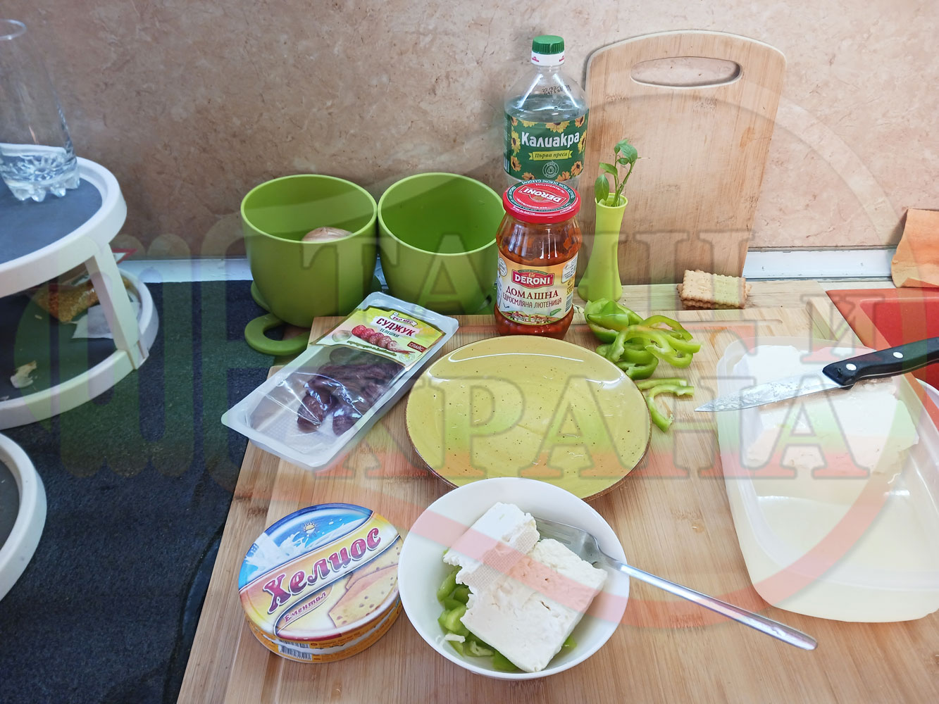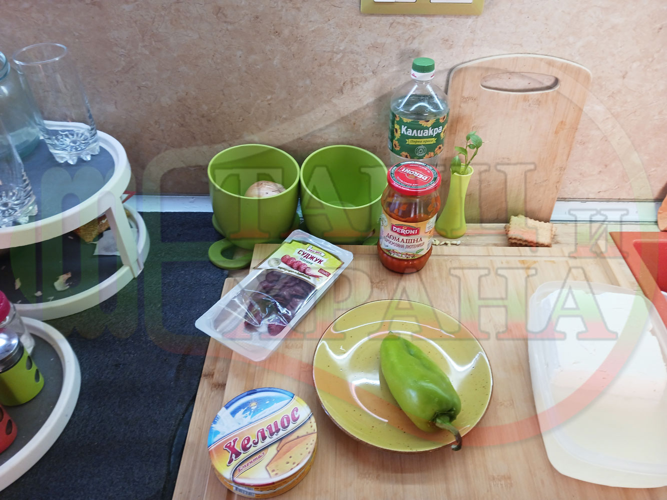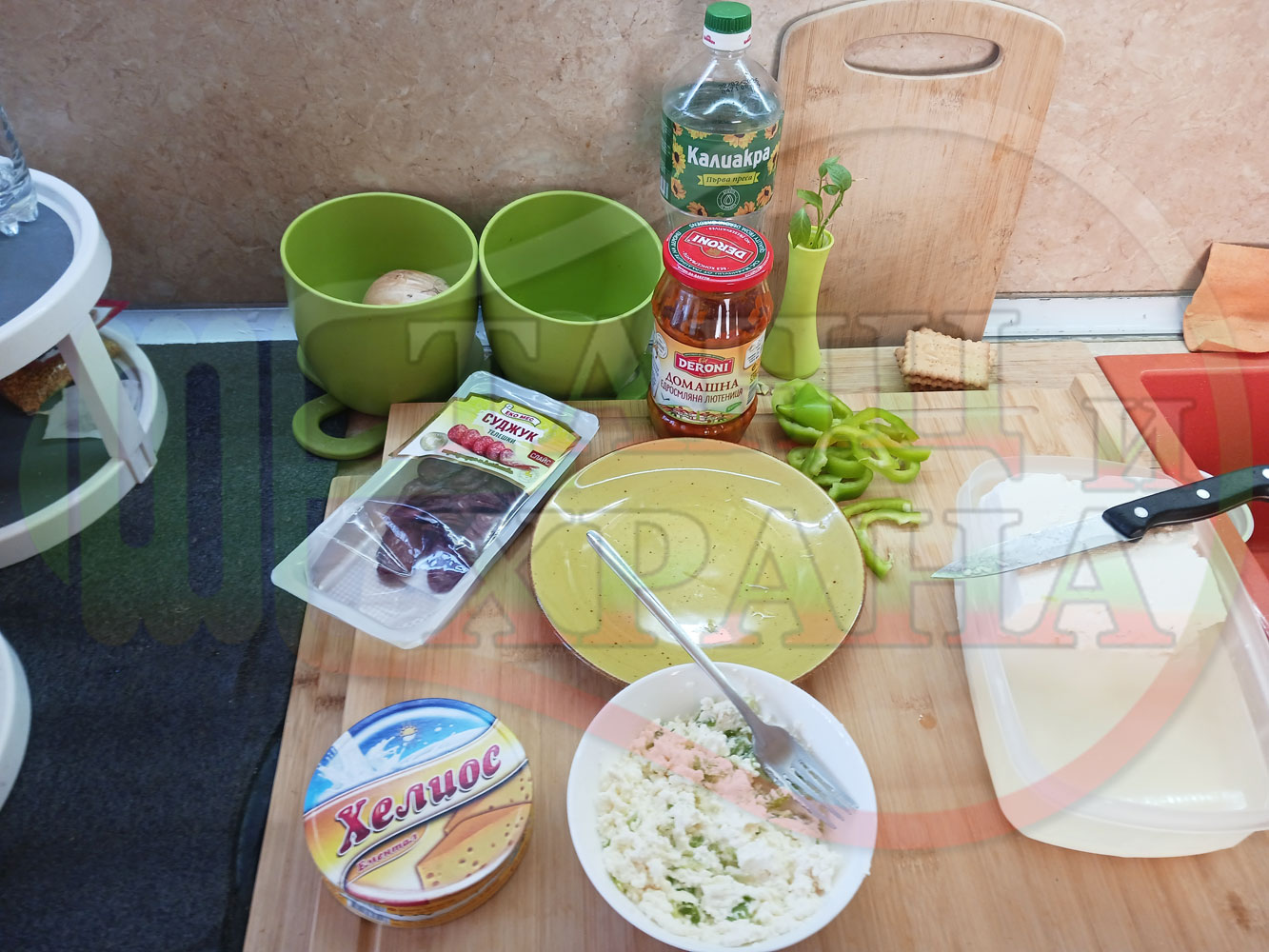 ПРОДУКТИ: Приблизителни количества за българска лютенична сурова супа "Суджукова зеленочушкова с БГсирене" приготвена от едросмляна лютеница напълнена в кладенчета от сиренов крем със зелени пресни чушки и краве бяло сирене гарнирана с телешки суджук и топено сирене - двукомпонентна