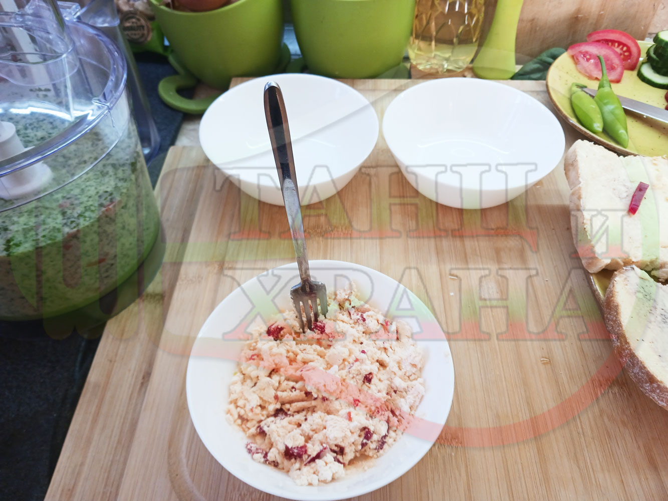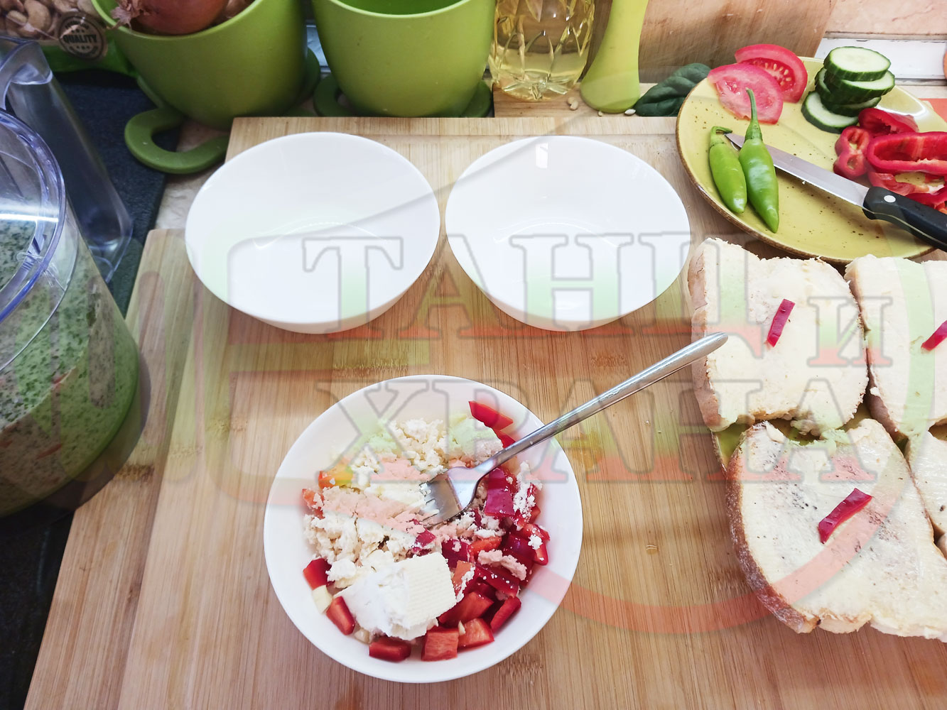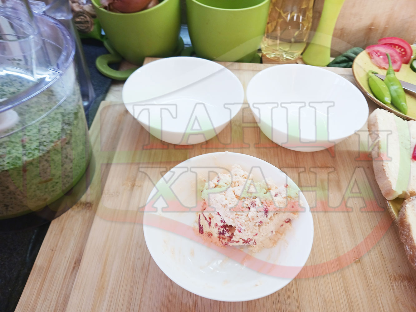 В случай, че сиреновият крем се получи прекалено гъст и солен, добавете нарязана на малки парченца червена чушка за да го разредите или сгъстете прекалено редкия крем с краве бяло сирене (винаги имайте под ръка някакво малко парченце (количество) от дадения продукт за доовкусяване и прецезиране на гъстотата). Разбърквайте и намачквайте с вилица след добавянето на съответния продукт (за сгъстяване или разреждане) за да прецените гъстотата и вкуса на крема (зависи от големината и водното съдържание на чушката/ите и солеността на сиренето).