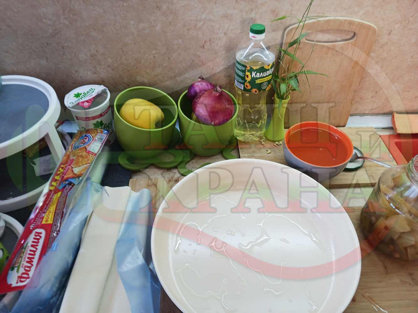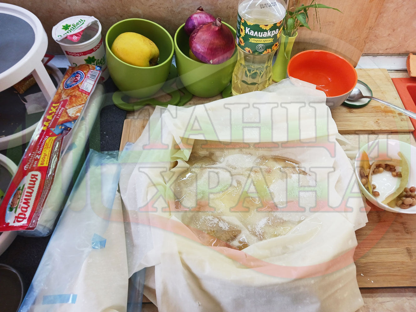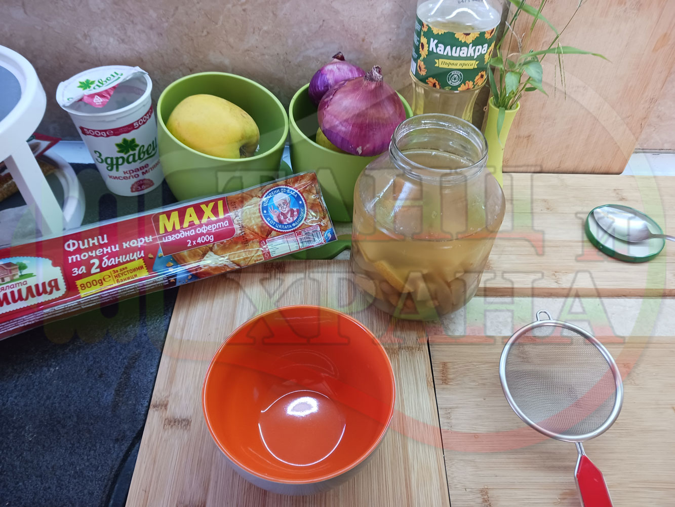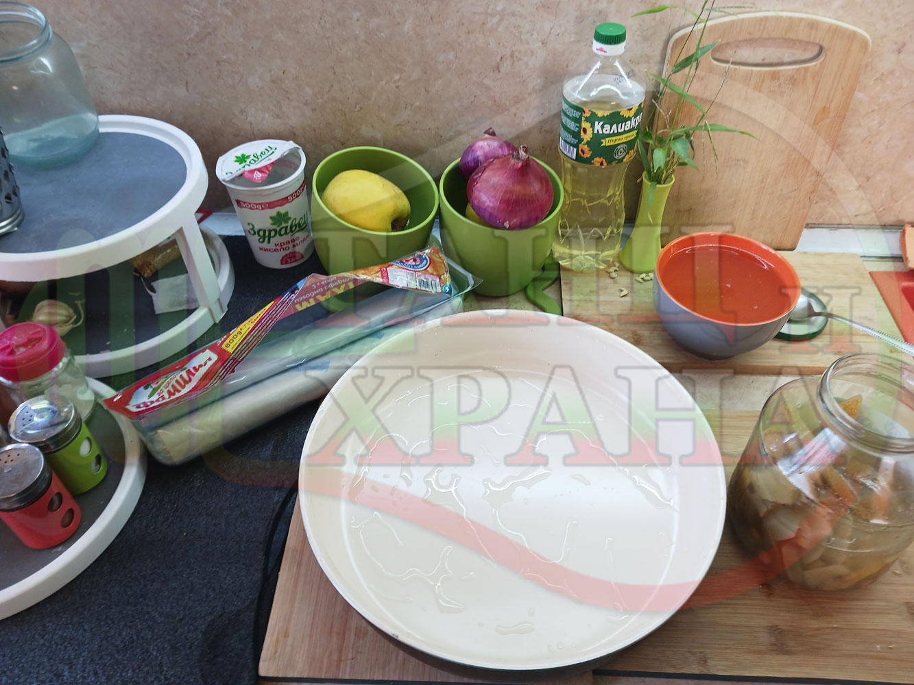 ПРОДУКТИ: Приблизителни количества за пъпешова сладка баница "Пъпешовокора златностафидена" приготвена от готови кори с плънка от сладко от кори на пъпеш със златни стафиди, кристална захар и слънчогледово олио подходяща за постещи хора