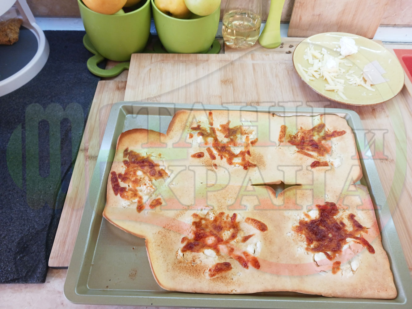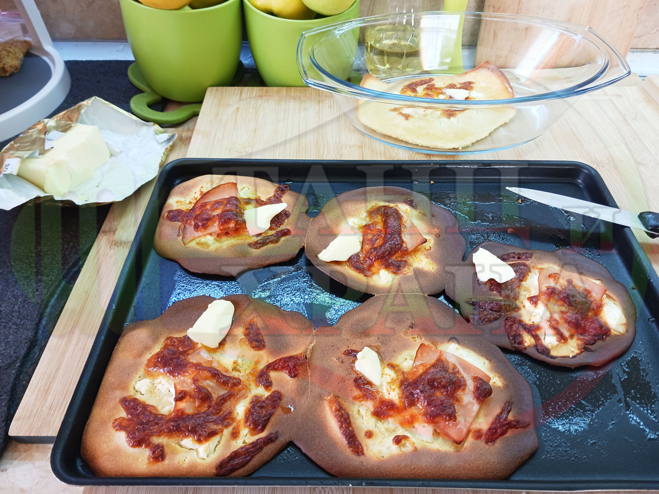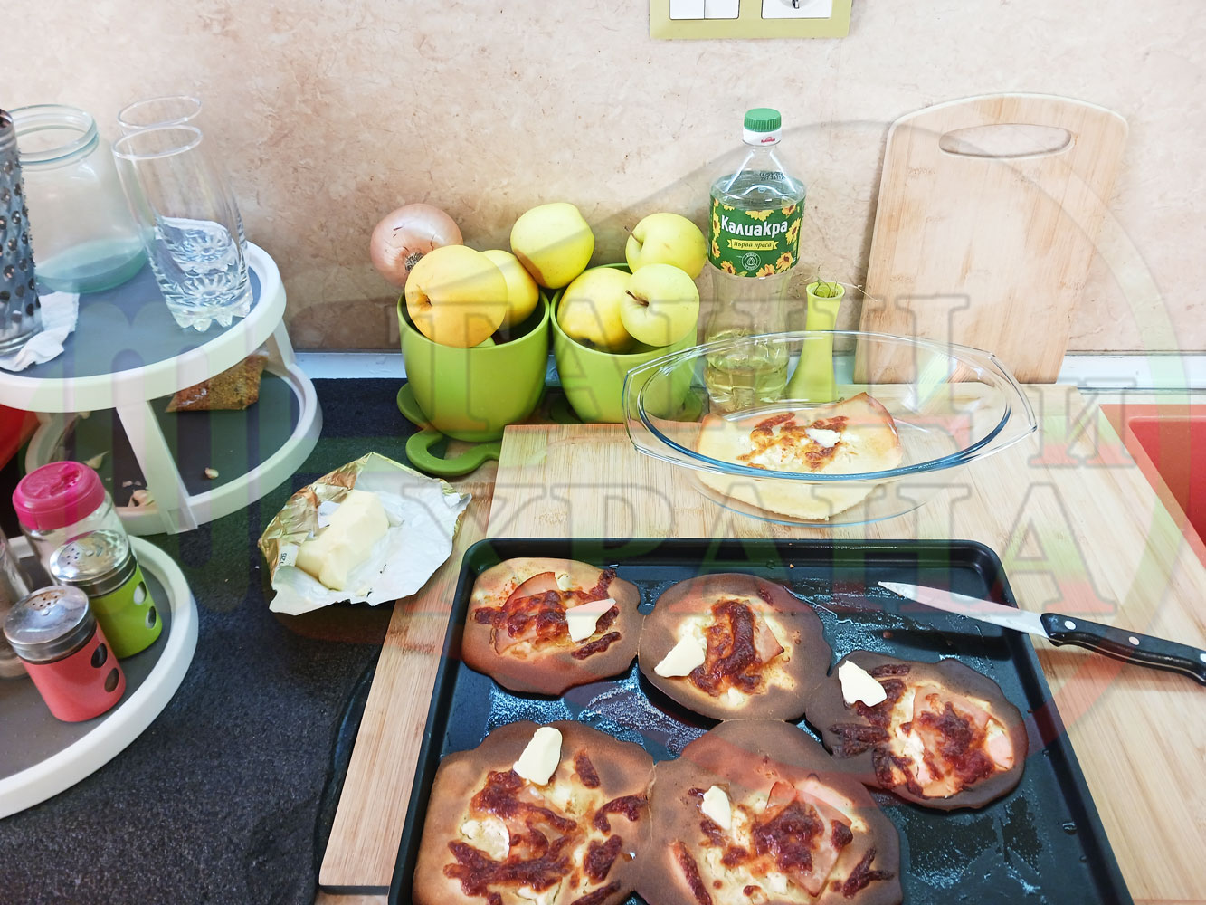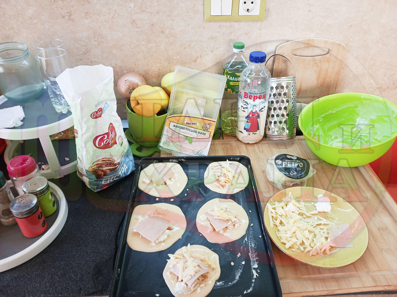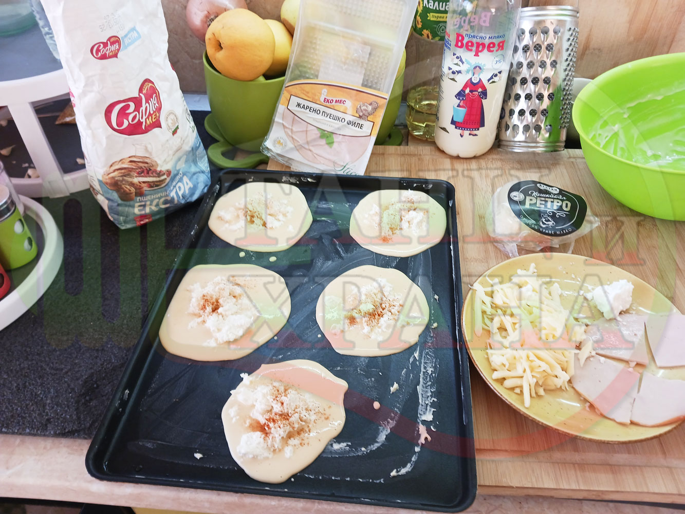 Спретнах необичайни по вид и на вкус палачинки, приготвени с прясно мляко, яйца и брашно, запечени с плънка от българско краве бяло сирене, млечен кашкавал и червен пипер. Към палачинките от едната тава, добавих пуешко жарено филе и макар да ги попрепекох се оказаха изключително вкусни. Ммммм... в кухнята се носи аромат на запечено масло с краве бяло сирене и вкусен, леко хрупкащ кашкавал. Отново се получи невероятна вкусно, вкусна, вкусотия (вкуснотия). ![]()