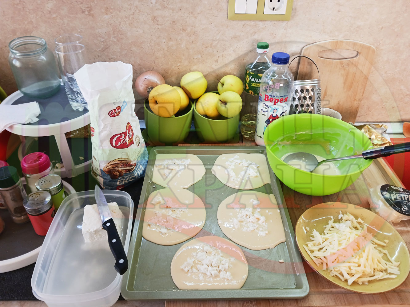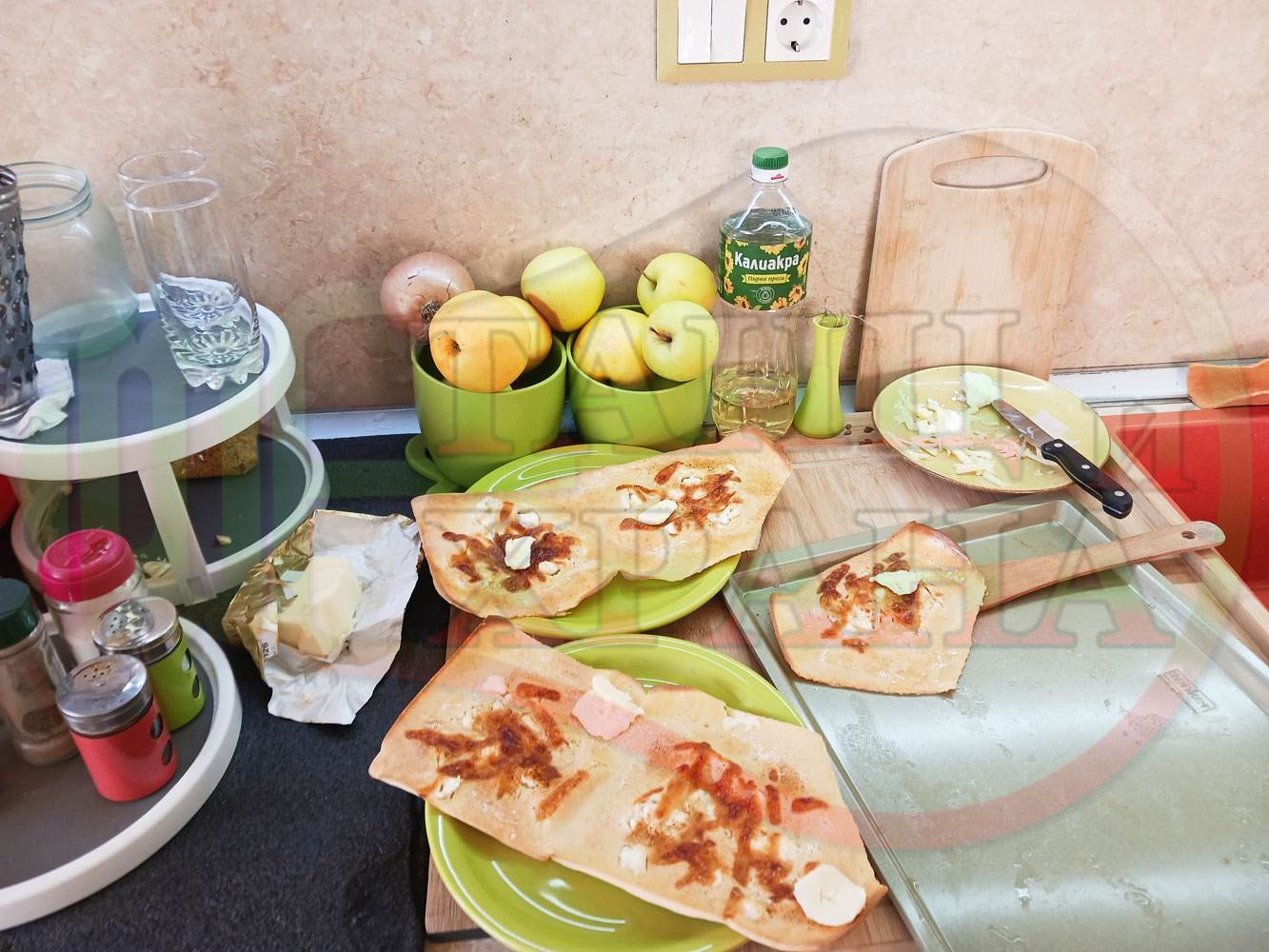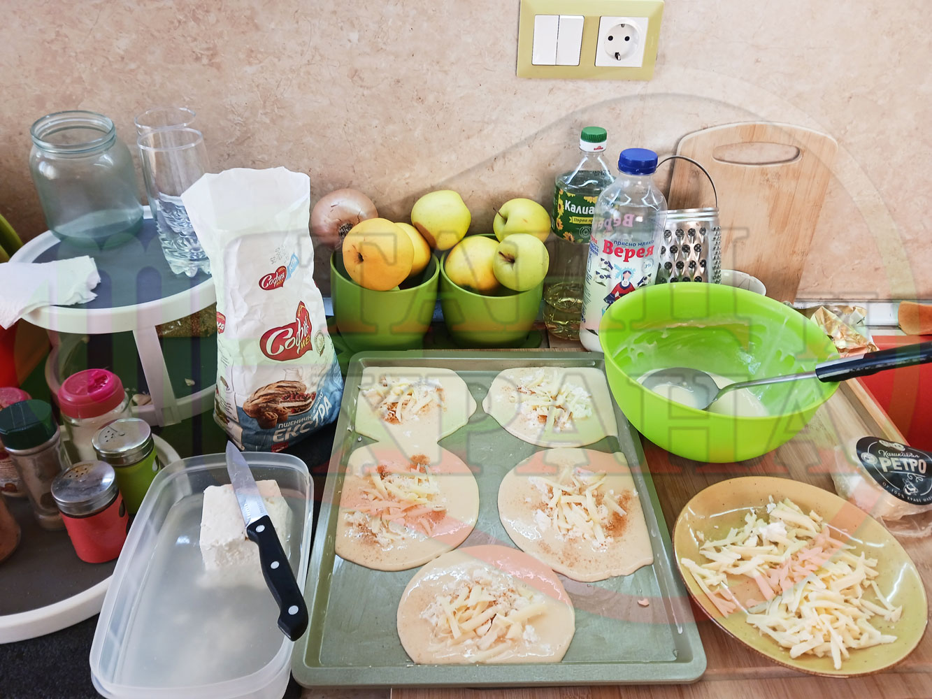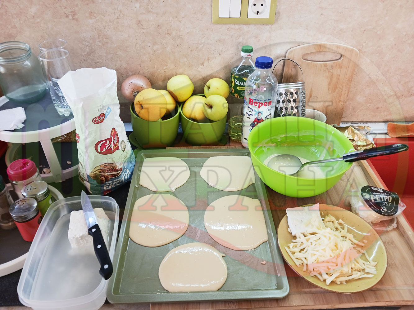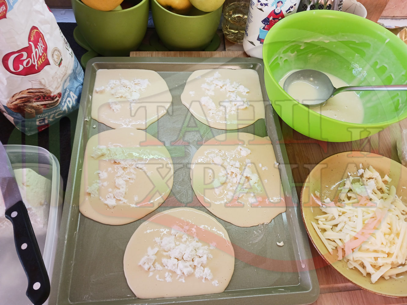 Спретнах необичайни по вид и на вкус палачинки, приготвени с прясно мляко, яйца и брашно, запечени с плънка от българско краве бяло сирене, млечен кашкавал и червен пипер. Към палачинките от едната тава, добавих пуешко жарено филе и макар да ги попрепекох се оказаха изключително вкусни. Ммммм... в кухнята се носи аромат на запечено масло с краве бяло сирене и вкусен, леко хрупкащ кашкавал. Отново се получи невероятна вкусно, вкусна, вкусотия (вкуснотия). ![]()