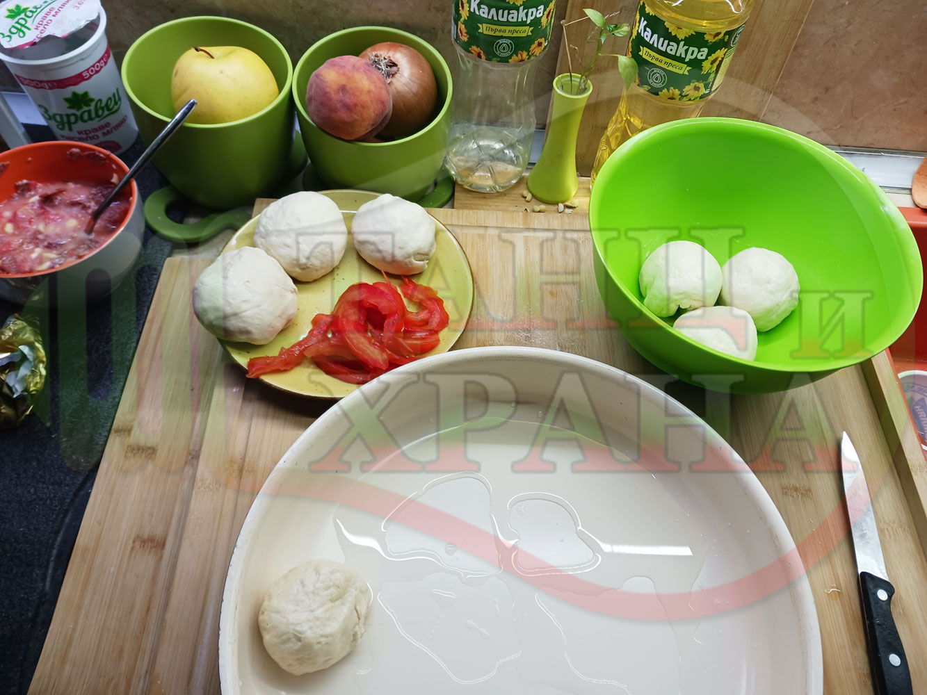 ПРОДУКТИ: Приблизителни количества за пълнени питки "Смядовсколуканкови доматеночеснови" запечени на фурна с масло и яйчено доматена плънка от пресни домати, стар чесън, яйца и смядовска луканка омесени със суха мая