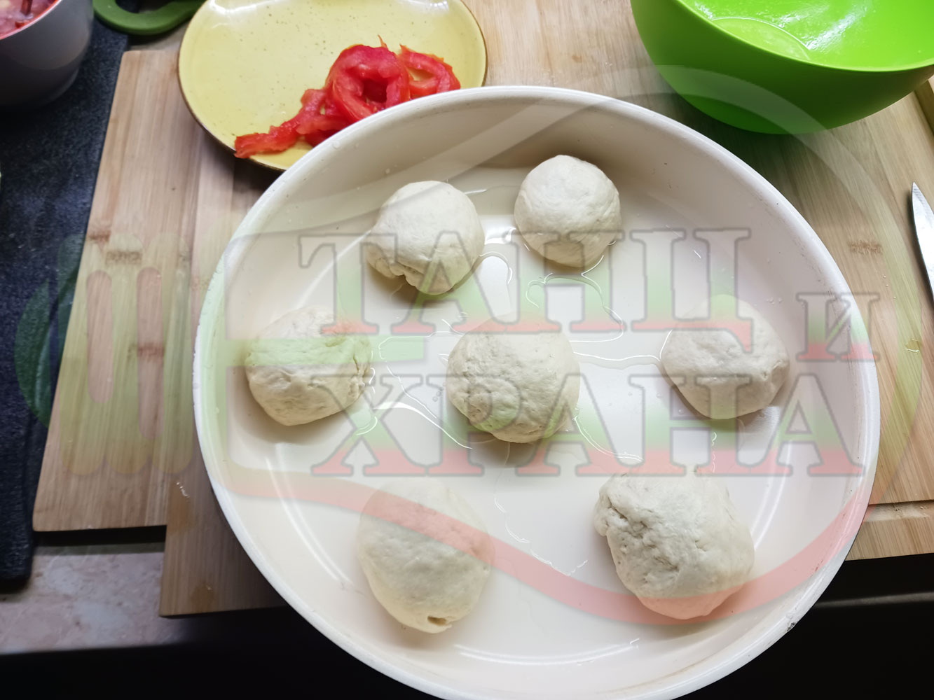 Поставете тавата с втасалите питки в предварително загрятата фурна (загрейте я за поне 5 минути). Запечете на фурна без вентилатор на 180 градуса за около 60 минути.