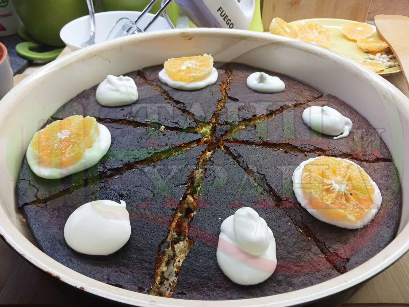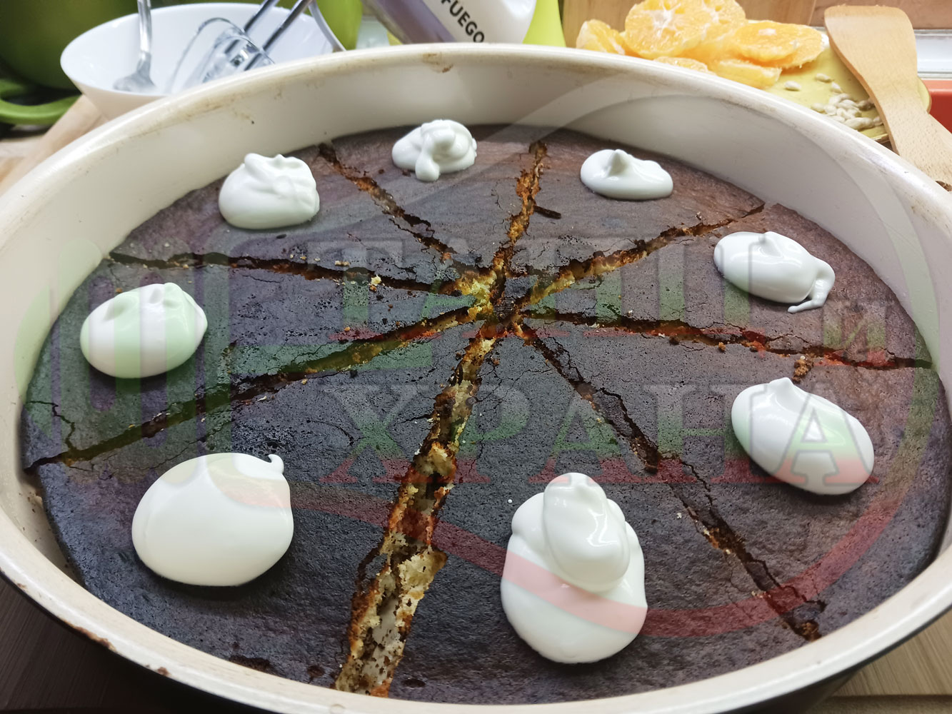 Бях си наумила да приготвя белтъчен десерт с някакъв пресен плод, така че белтъка да не се преизсушава и става ронлив (както се получава с белтъчния десерт наречен "целувки"). Комбинацията от белтък и пресен сочен плод е доста трудна за изпичане и все търсех някакъв начин да успея и накрая успях да приготвя десерт, в който да участват белтъците и пресните плодове в идеална хармония и баланс (успехът е домашен, наш си, според нашия вкус (наш - семейството ми)). Спретнах кексова торта, която дозапекох с белтъчен крем, гарниран с пресни, сочни мандарини. Тортата се получи изключително вкусна с невероятната комбинация от кекс, който носи сочността на пресния плод и меката кремообразност на белтъчния крем. Ммммм... отново се получи голяма вкусно, вкусна, вкусотия (вкуснотия). ![]()