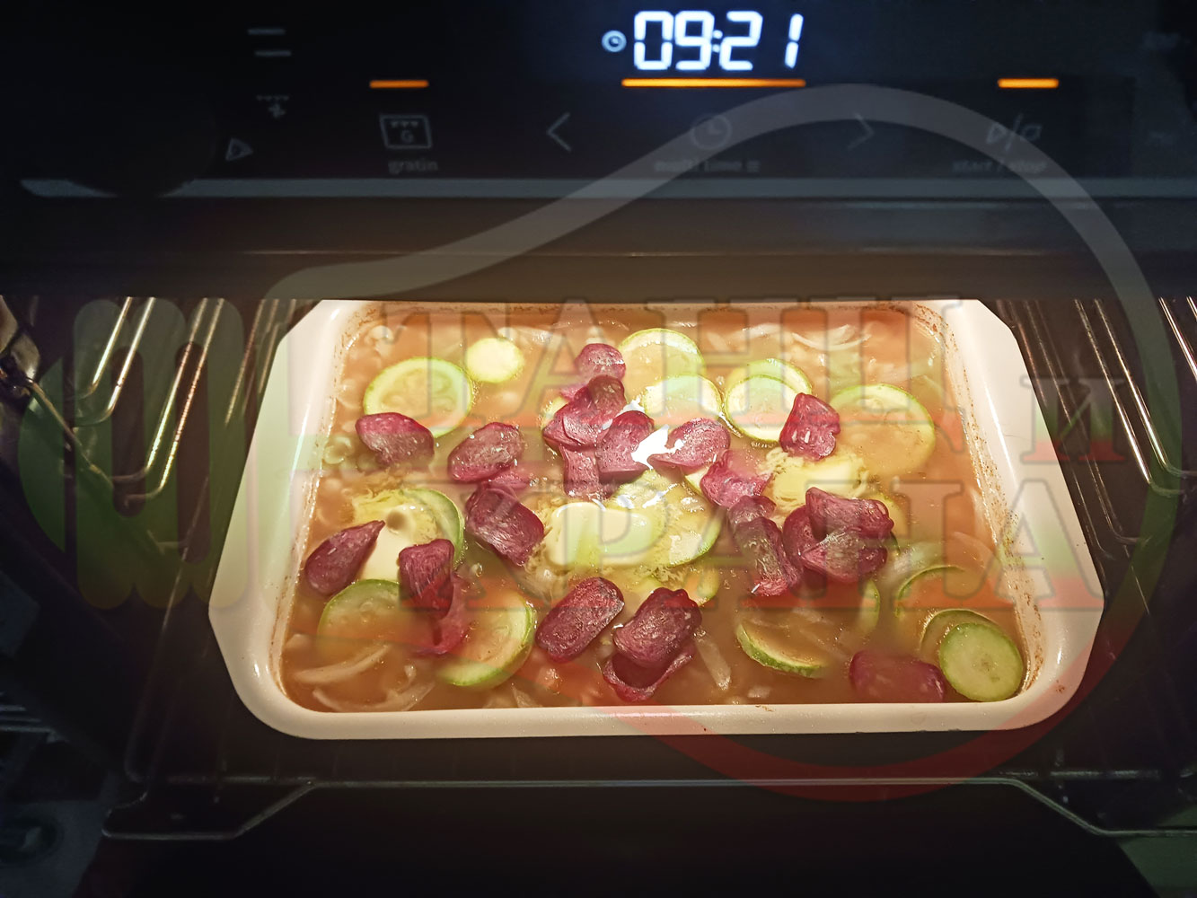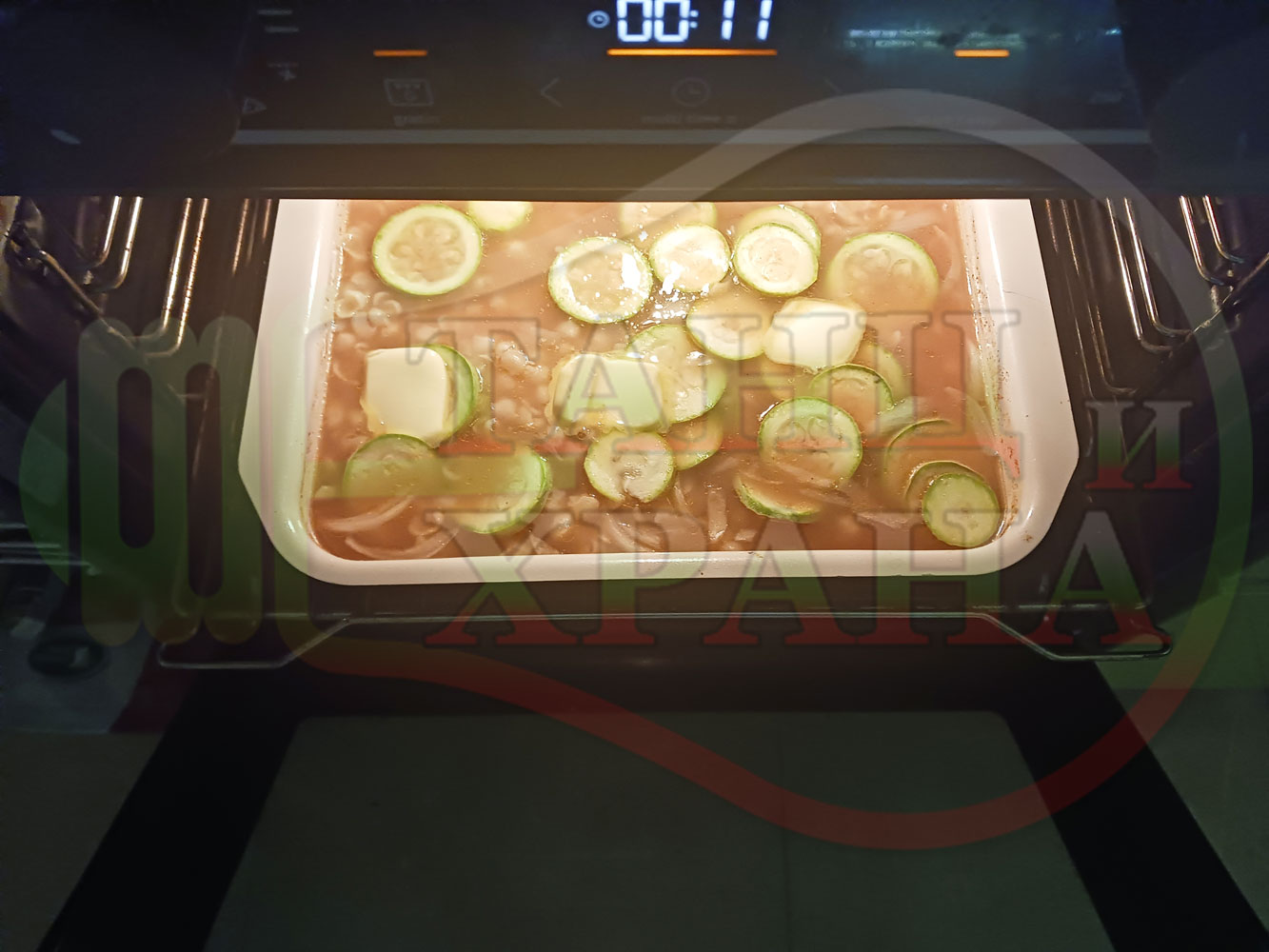 ВНИМАНИЕ: Фурните са различни и съответно времето за сваряване и запичане е ориентировъчно. Наблюдавайте процеса на запичане и при необходимост покрийте с капак или отстранете тавата от фурната.
