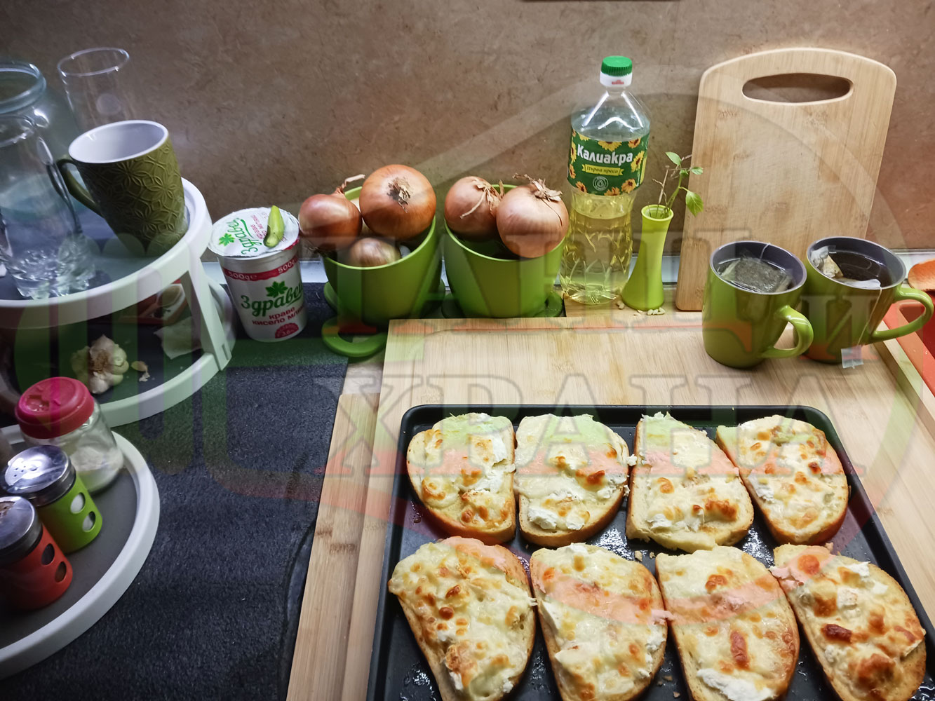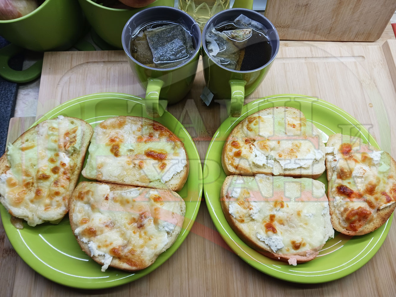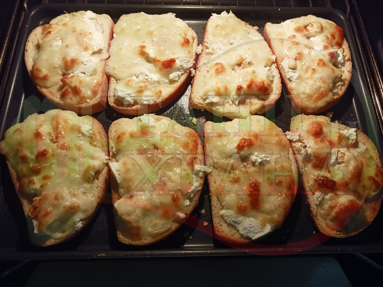Български филийки "Кашкавалени червеносладкопиперени с БГсирене" запечени на фурна с краве масло, краве бяло сирене (българско, саламурено), червен сладък пипер и млечен кашкавал