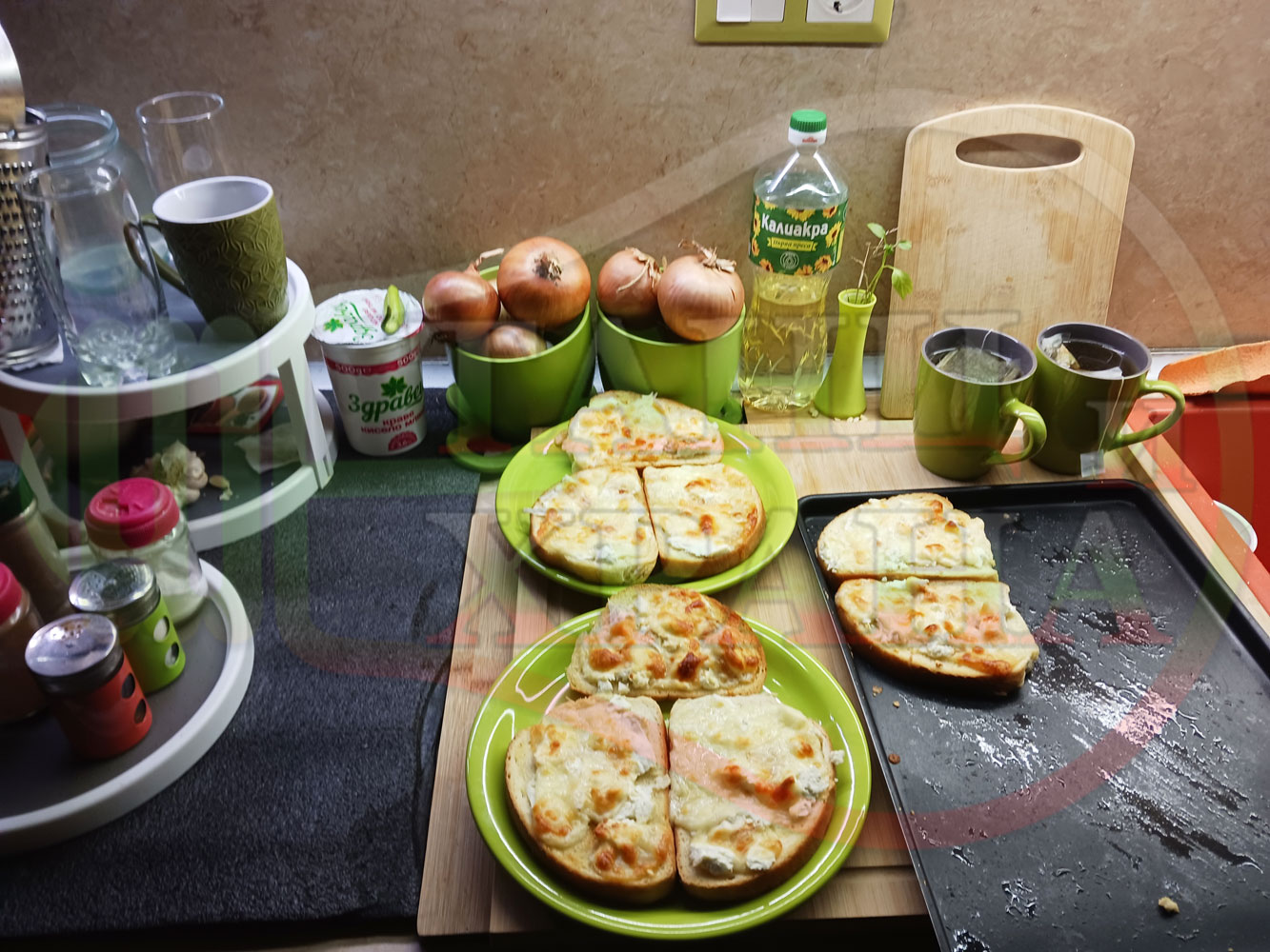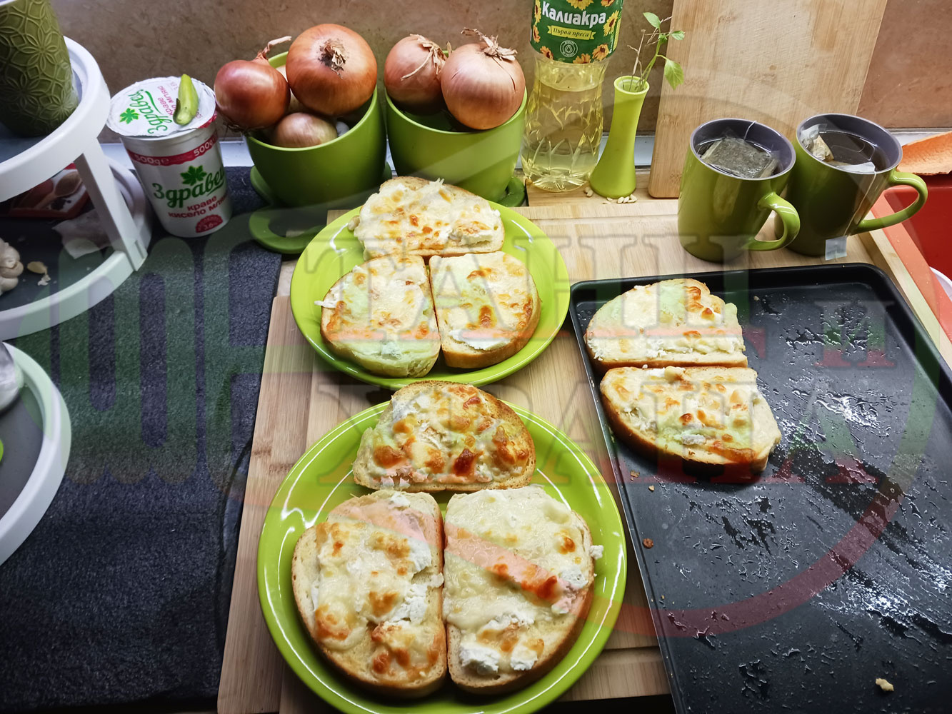 Как да не запека филийки на фурна с типично български продукти, намиращи се във всеки български дом. Кравето бяло сирене, обожава червения сладък пипер и доказателството за това е едно от най-често приготвяните и обичани предястия още от моето детство (българско сирене нарязано на кубчета, поръсено с червен сладък пипер и хубаво напоено със слънчогледово олио). Сиренцето обича масълце и в комбинация с червения сладък пипер и млечния кашкавал се получава невъобразима вкусно, вкусна, вкусотия (вкуснотия) са мо от 3 основни продукта. ![]()