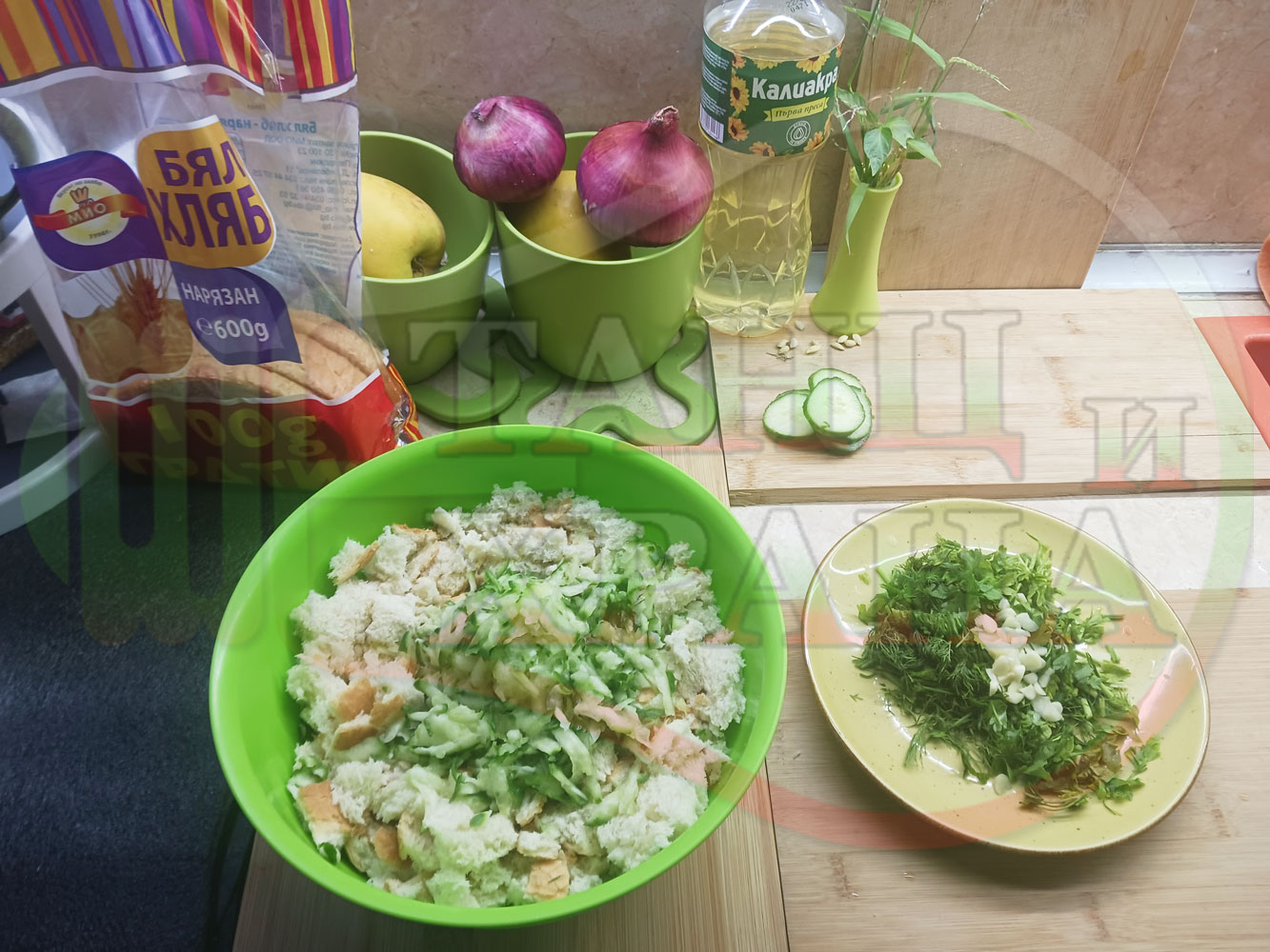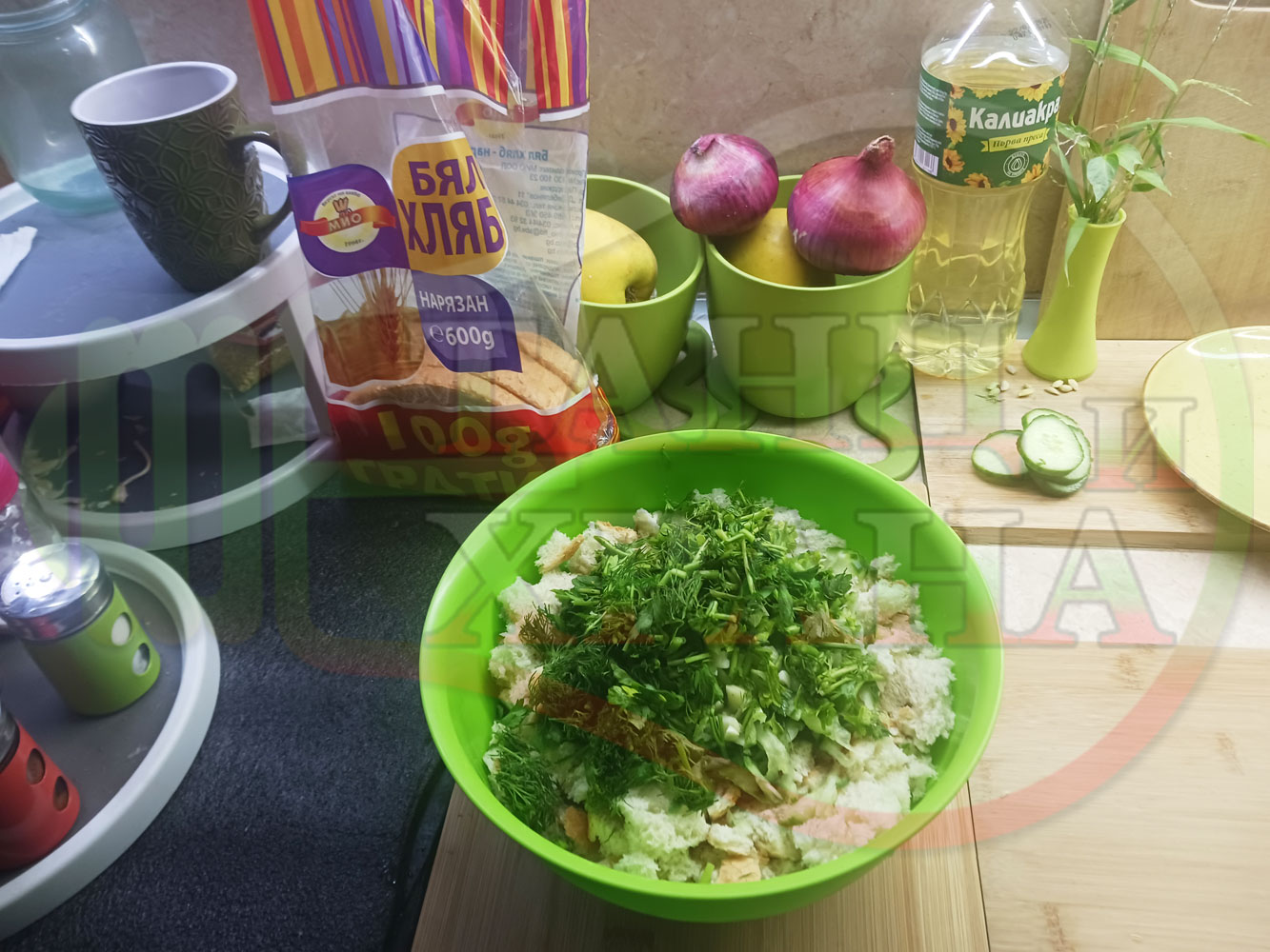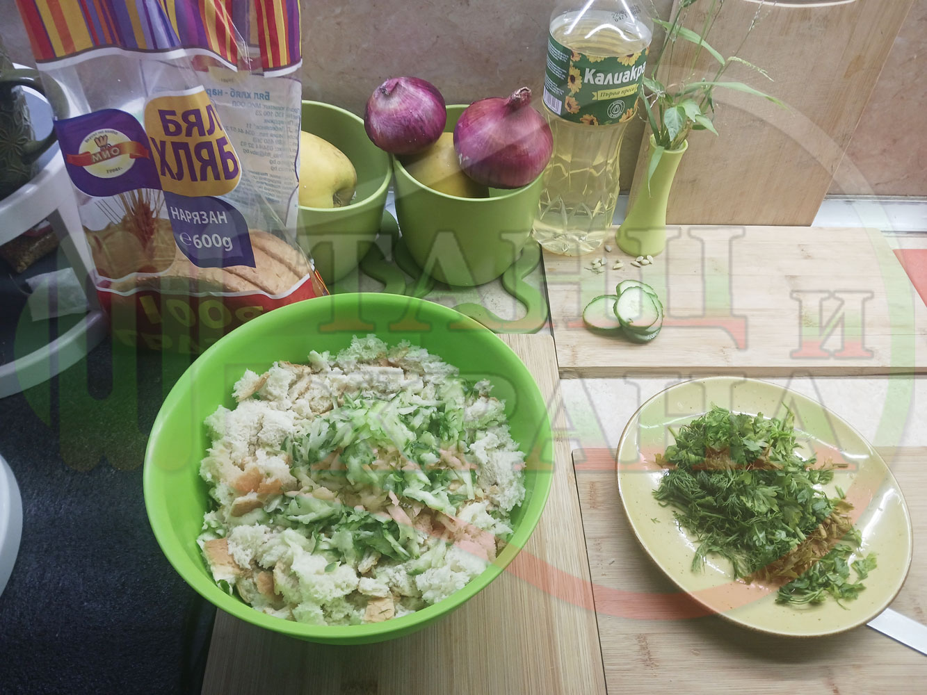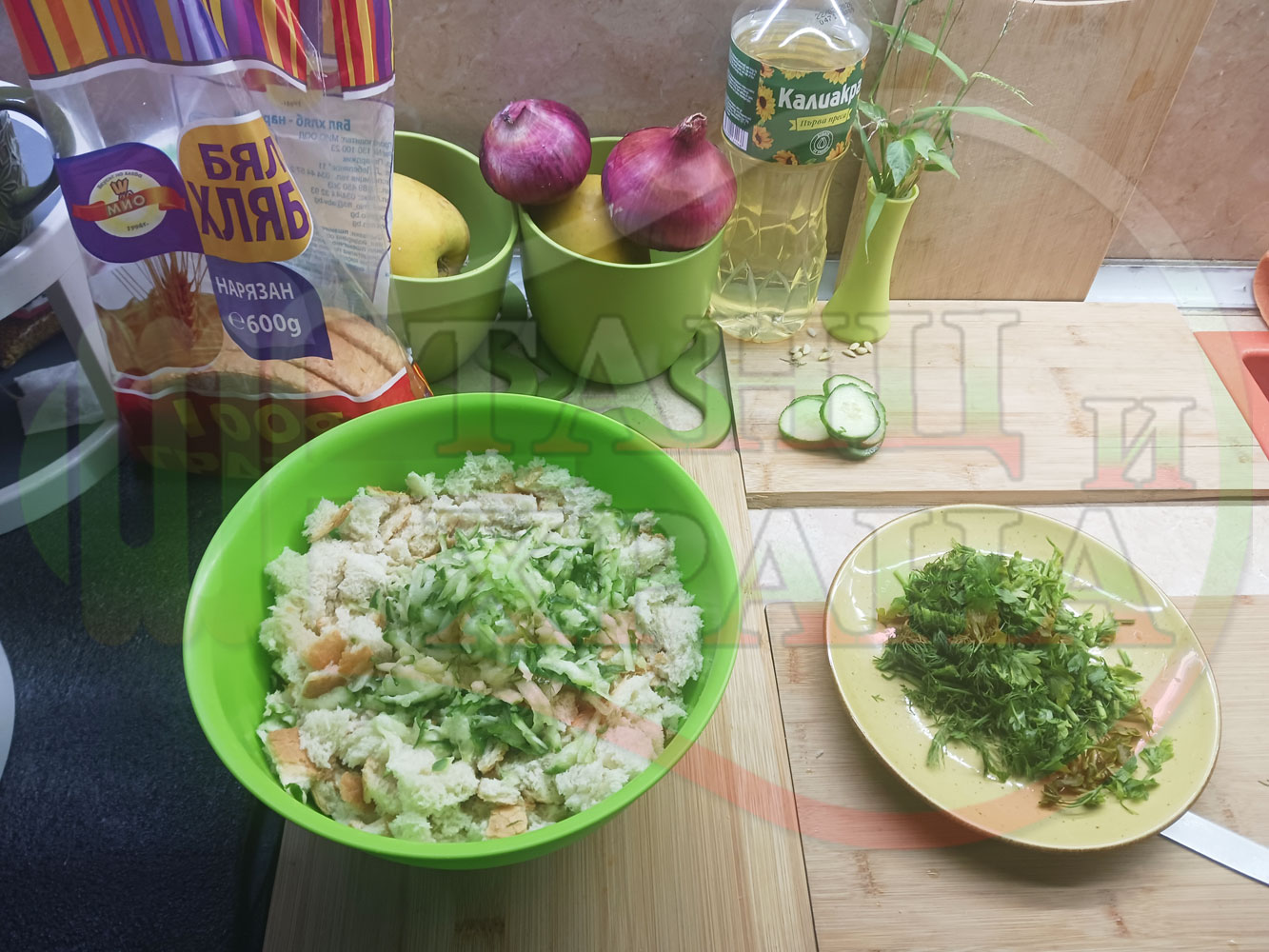 В "Свързани продукти" вижте рецептите на други видове хлебни кюфтета, печива, салати приготвени с хляб, зеленчуци, краве бяло сирене и техни"ТЕ" производни.