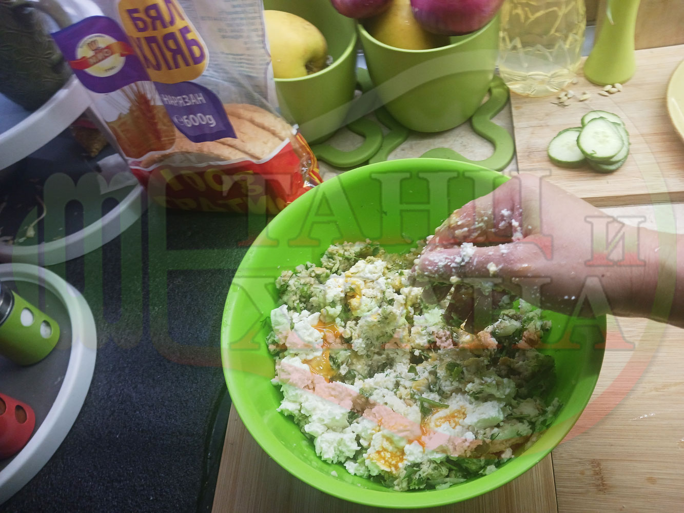 В случай, че хлебното тесто се получи прекалено гъсто и солено, настържете част от краставицата за да го разредите или сгъстете прекалено рядкото хлебно тесто с филийки хляб и/или краве бяло сирене (винаги имайте под ръка някакво малко парченце от дадения продукт за доовкусяване и прецезиране на гъстотата). Разбърквайте и намачквайте с вилица и/или размесвайте с ръка след добавянето на съответния продукт (за сгъстяване или разреждане) за да прецените гъстотата и вкуса на тестото (зависи от големината и водното съдържание на краставицата/ите и солеността на сиренето).