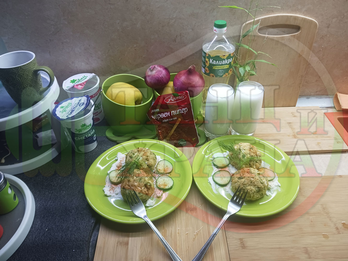 Винаги се стремя да оползотворявам белия хляб или "Добруджа" преди да се развали и спретвам някакво хлебно ястие. Омесих хлебно тесто, което овкусих с пресни краставици, копър, магданоз, чесън и краве бяло сирене. Изпекох вкусни хлебни кюфтета на фурна, които гарнирах в първия ден със заквасена сметана а във втория ден, в който ги хапнахме спретнах млечна основа от кисело мляко от България и добавих червени пресни чушки... Мммм... отново се получи голяма вкусно, вкусна, вкусотия (вкуснотия). ![]()
