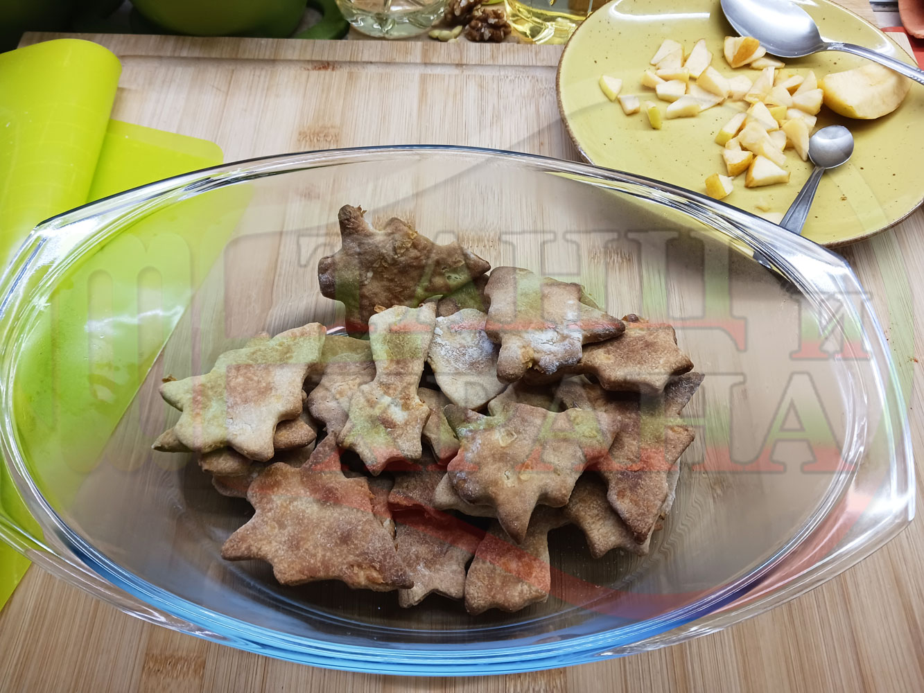 Български класически коледни курабийки "Ябълкови канелени" приготвени с пресни ябълки и канела за Коледа 2025 г. омесени с брашно, яйца и кристална захар