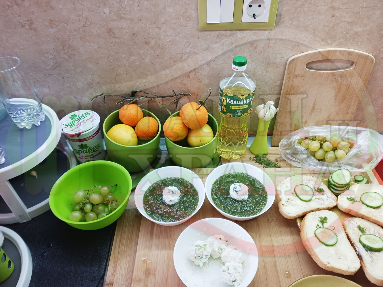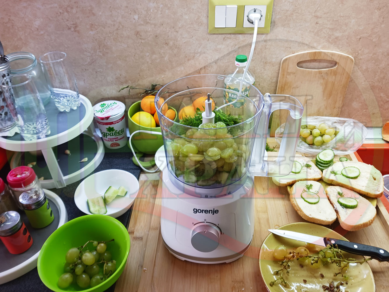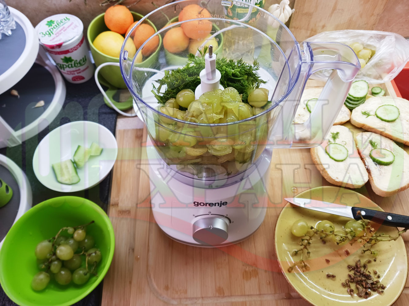 ПРОДУКТИ: Приблизителни количества за българска сурова сладко солена супа "Гроздовокопърова сиреновокраставична с БГсирене" приготвена с прясно грозде, краставици и свеж копър гарнирана с топчета от сиреново краставичен крем с краве бяло сирене (българско, саламурено) - двукомпонентна
