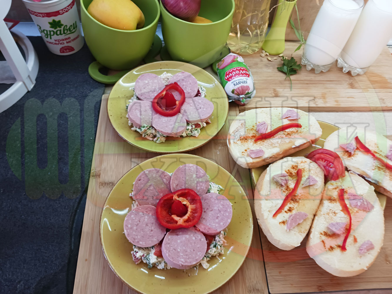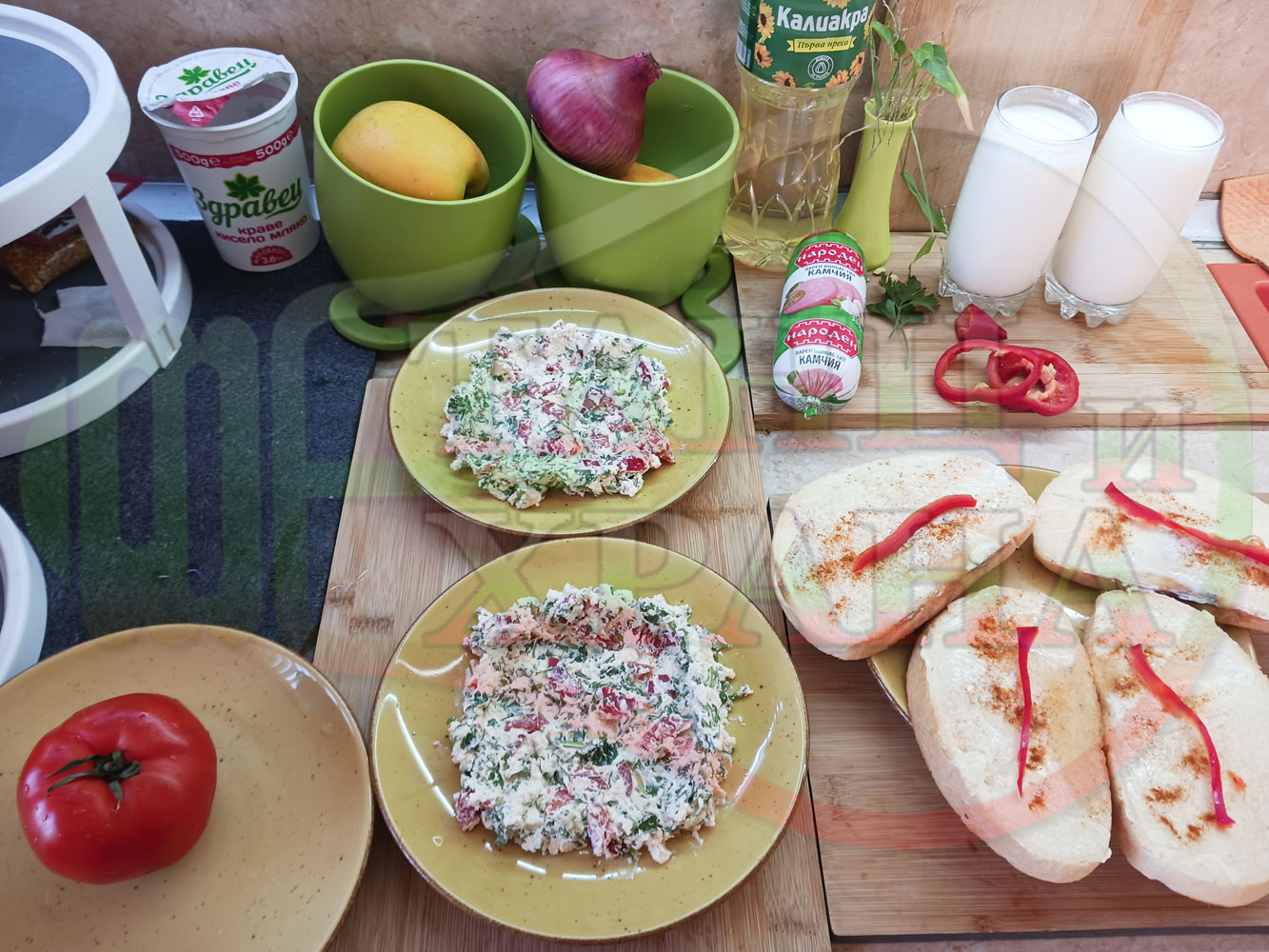 Приготвих българската доматена сурова супа с два от най-обичаните и любими български продукта още от моето детство. Саламът "Камчия" е с леко пикантен чеснов вкус и в комбинация с кравето бяло сирене, домата/ите, магданоза и червените пресни чушки се получава невероятна вкусна доматена супа с все обичани продукти и често хапвани под една или друга форма от всеки българин. Просто, бързо и лесно приготвяне и изключително полезна, вкусно, вкусна, вкусотия (вкуснотия)... ![]()