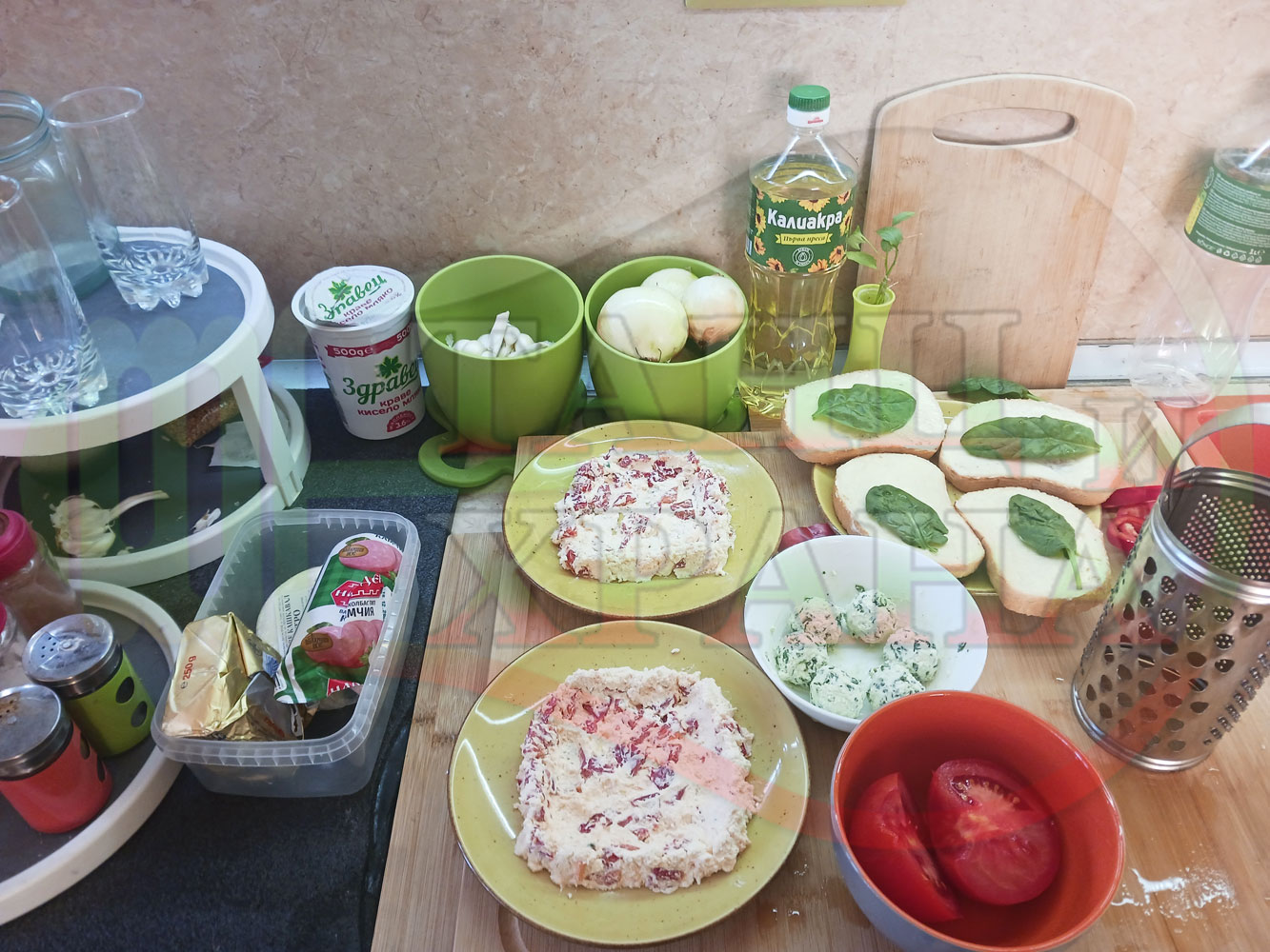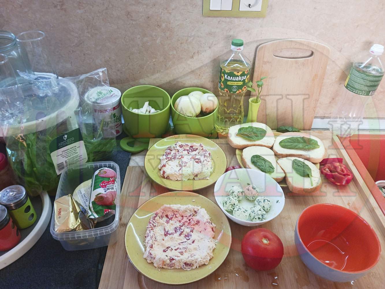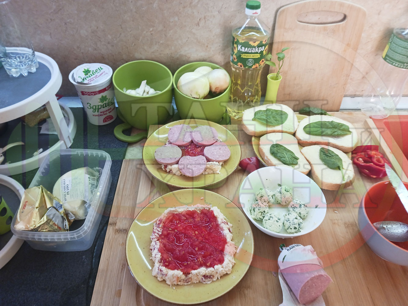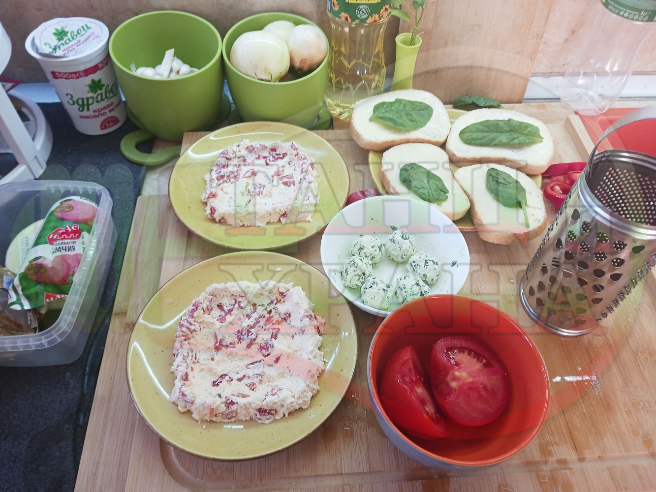 ПРОДУКТИ: Приблизителни количества за българска доматена сурова топчеста супа "Камчиевосаламена доматеночушкова спаначена с БГсирене " приготвена с домати напълнени в кладенчета от червени пресни чушки и краве бяло сирене гарнирана с пикантен салам и сиренови топчета със спанак - двукомпонентна