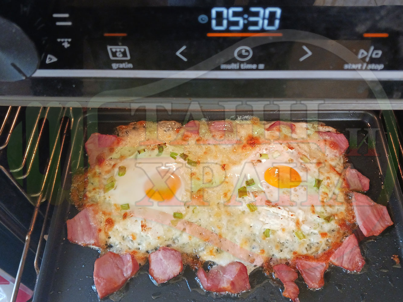 ВНИМАНИЕ: Фурните са различни и съответно времето за запичане е ориентировъчно. Наблюдавайте процеса на запичане и при необходимост, покрийте с хартия или фолио за печене.
