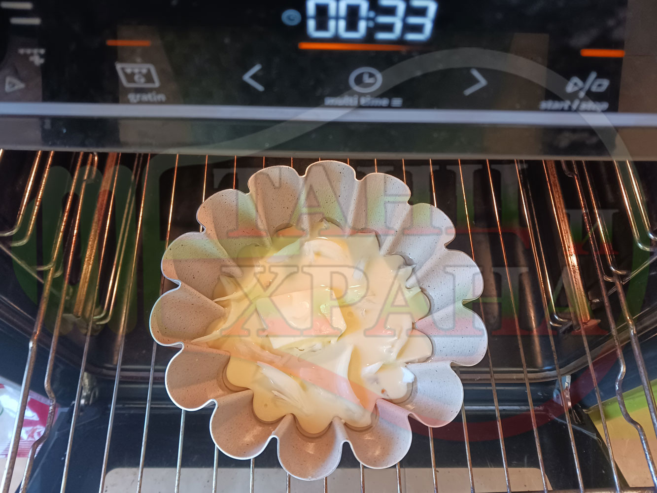 ВНИМАНИЕ: Фурните са различни и съответно времето за запичане е ориентировъчно. Наблюдавайте процеса на запичане и при необходимост, покрийте с хартия или фолио за печене. За по-равномерно изпичане покрийте формата след 20-та минута от началото на зададеното време.
