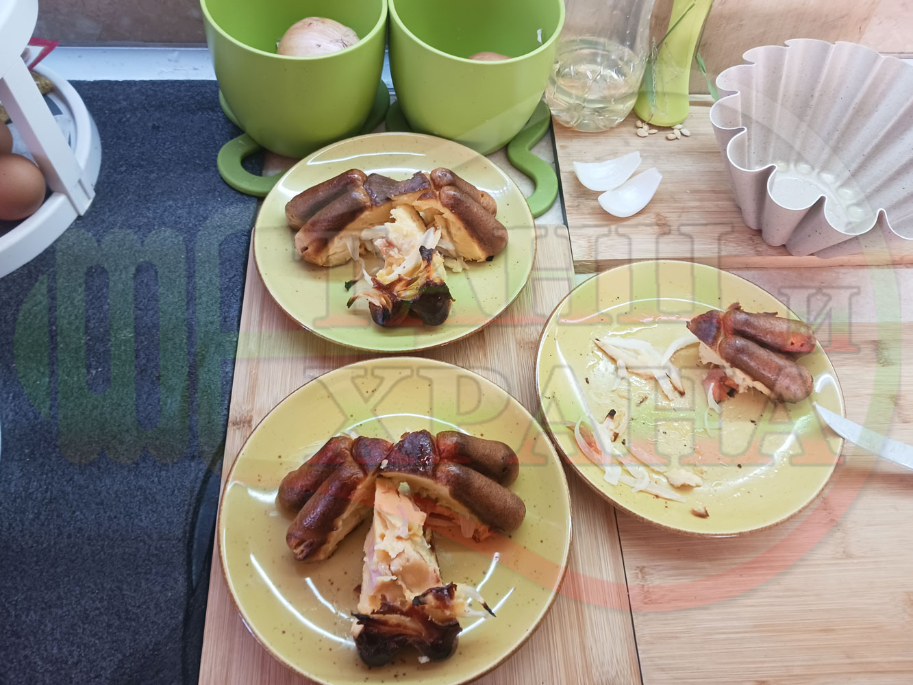 В "Свързани продукти" вижте рецептите на други видове бухтени торти, пити, палачинки, печива с филета, колбаси, кромид лук и техни"ТЕ" производни.