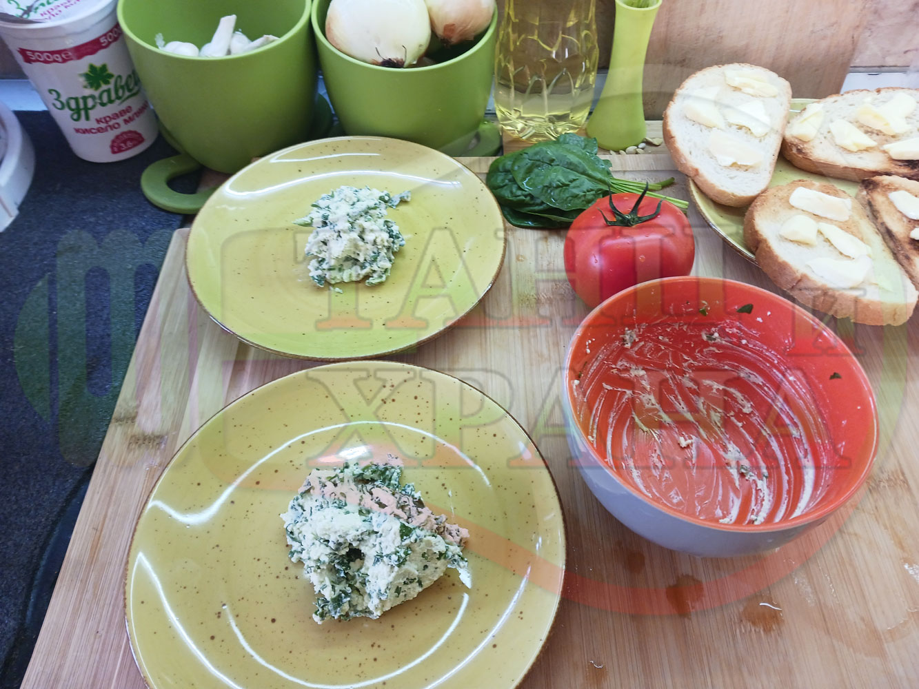 В случай, че сиреновият крем се получи прекалено гъст и солен, добавете нарязан на едро спанак за да го разредите или сгъстете прекалено редкия крем с краве бяло сирене (винаги имайте под ръка някакво малко парченце (количество) от дадения продукт за доовкусяване и прецезиране на гъстотата). Разбърквайте и намачквайте с вилица след добавянето на съответния продукт (за сгъстяване или разреждане) за да прецените гъстотата и вкуса на крема (зависи от големината и водното съдържание на спанака и солеността на сиренето). Съобразявайте и според вида на продукта за гарниране и неговото водно съдържание и особености (в случая са пресните домат/и).
