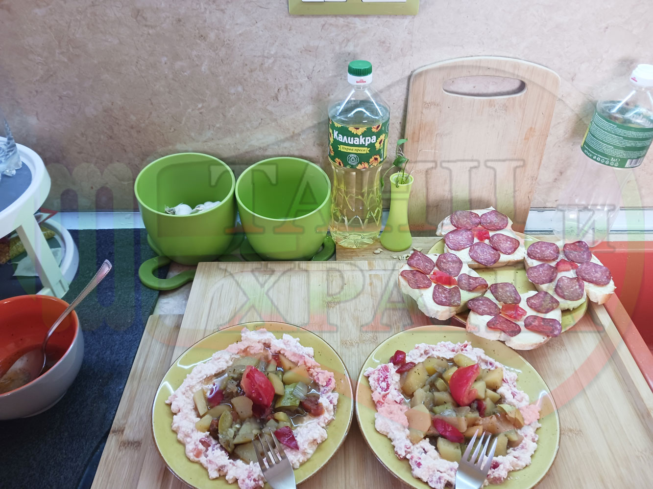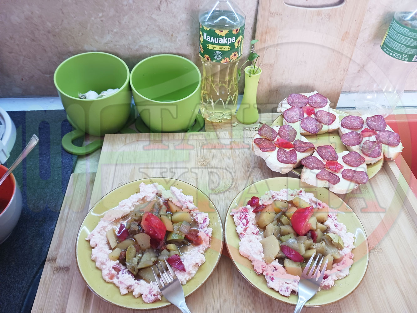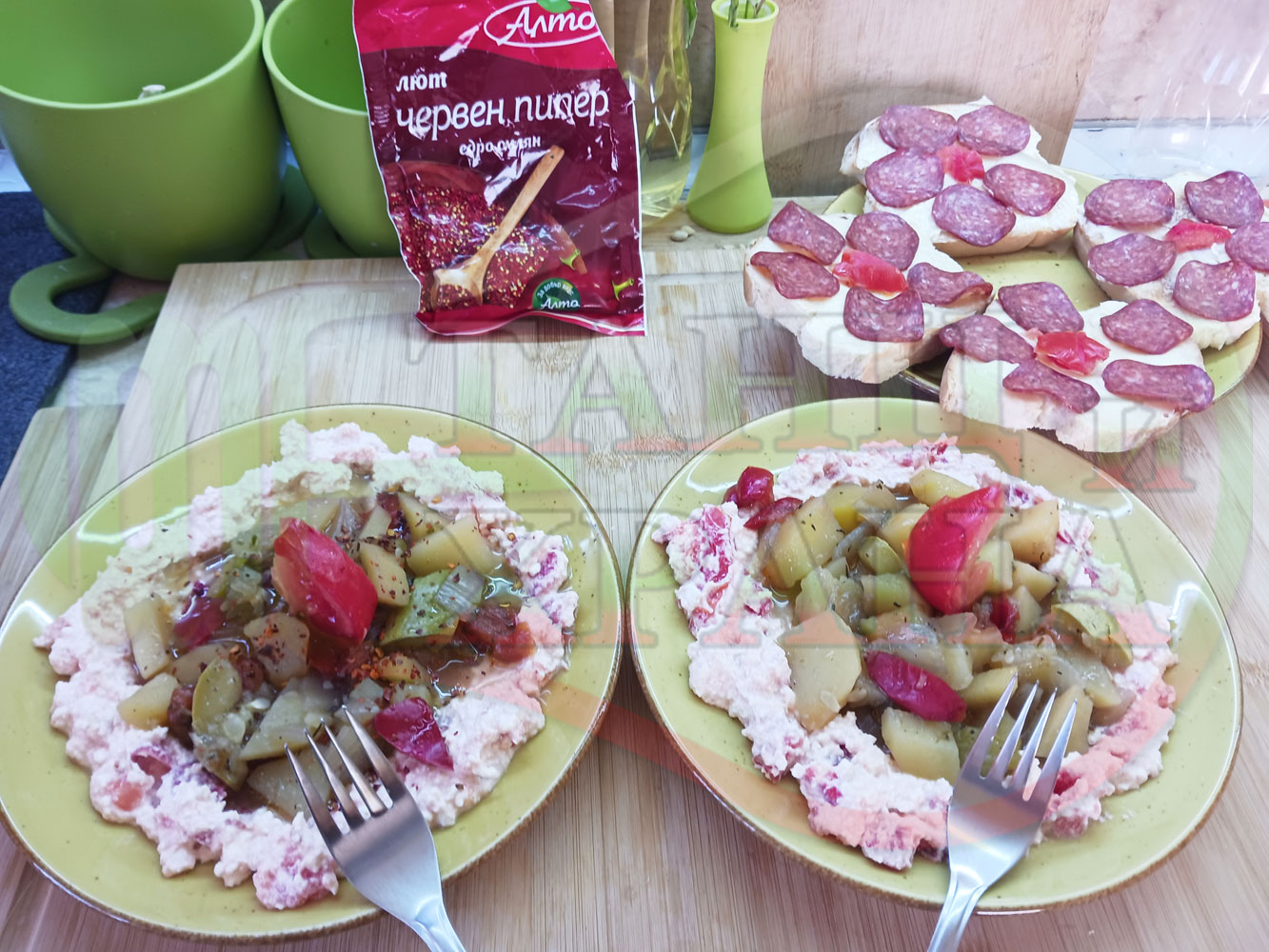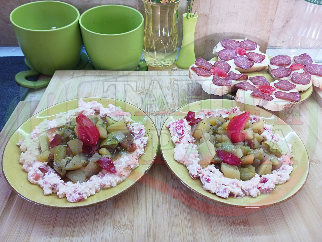 1. Картофи със зеленчуци - 500 гр. (от предварително сварените)