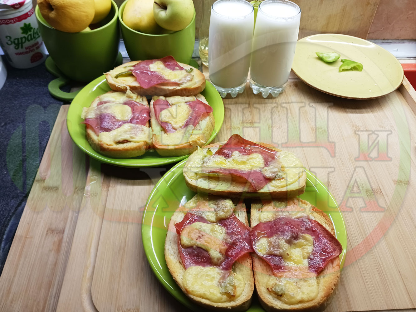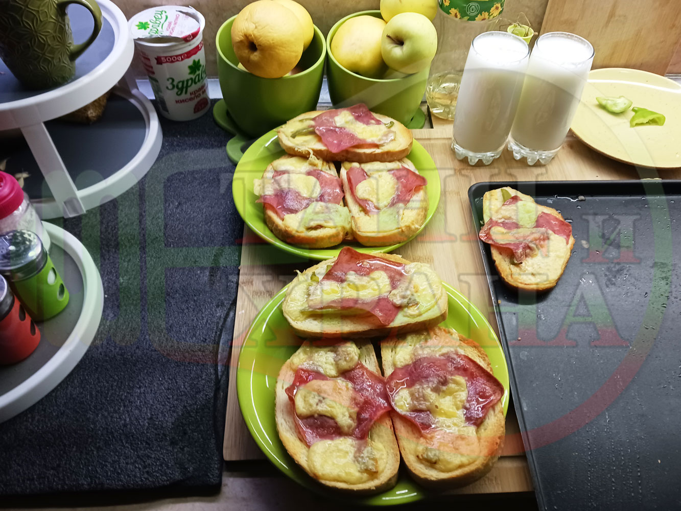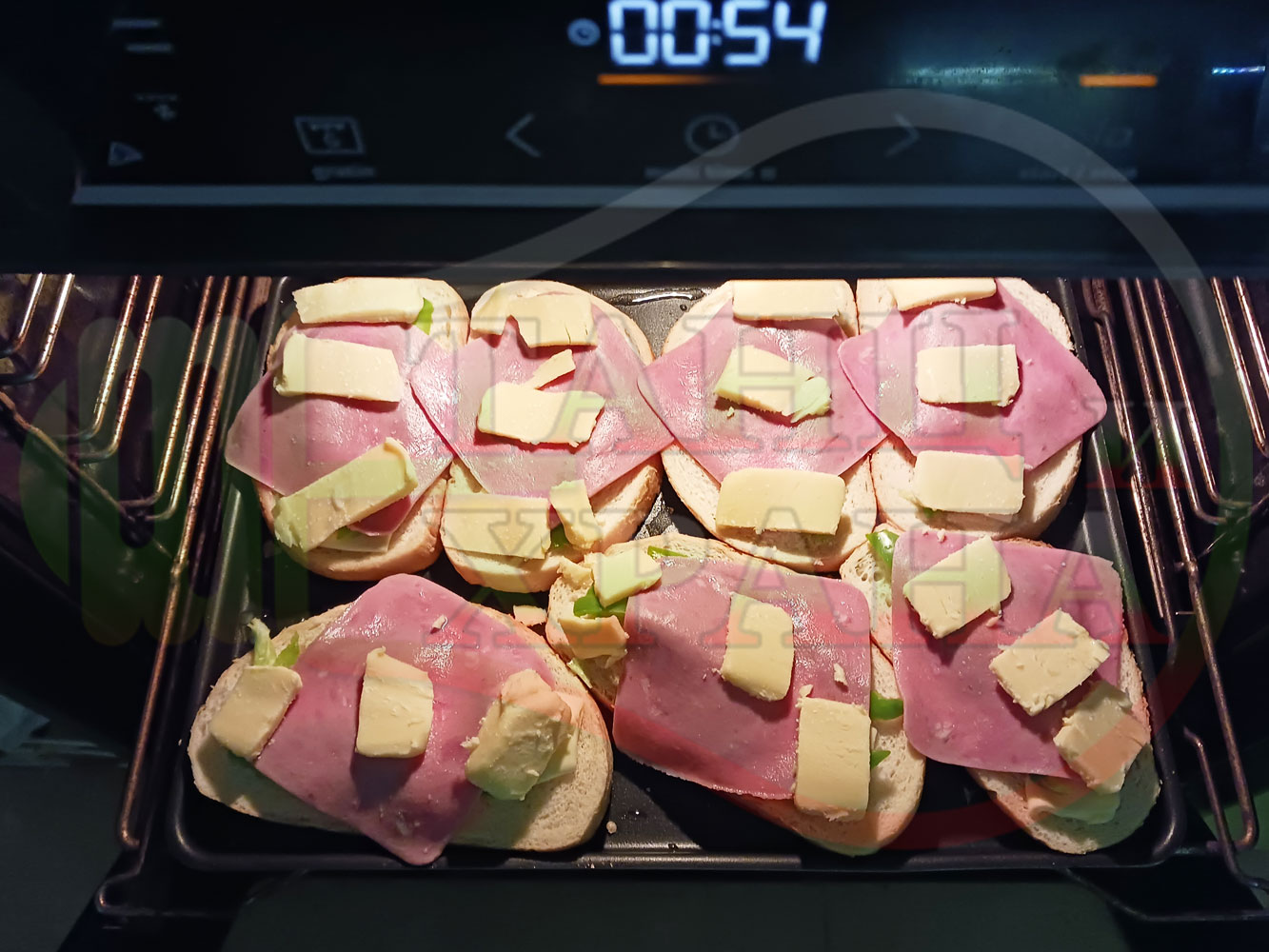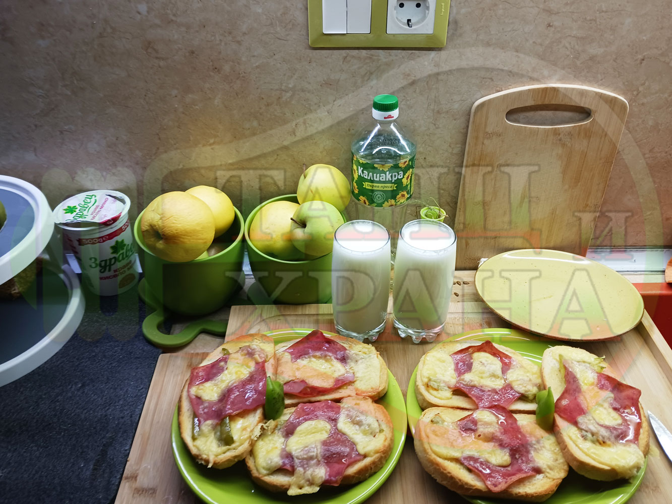 Български филийки "Шункови зеленочушкови кашкавалени" запечени на фурна с краве масло, зелени пресни чушки, шунка и млечен кашкавал