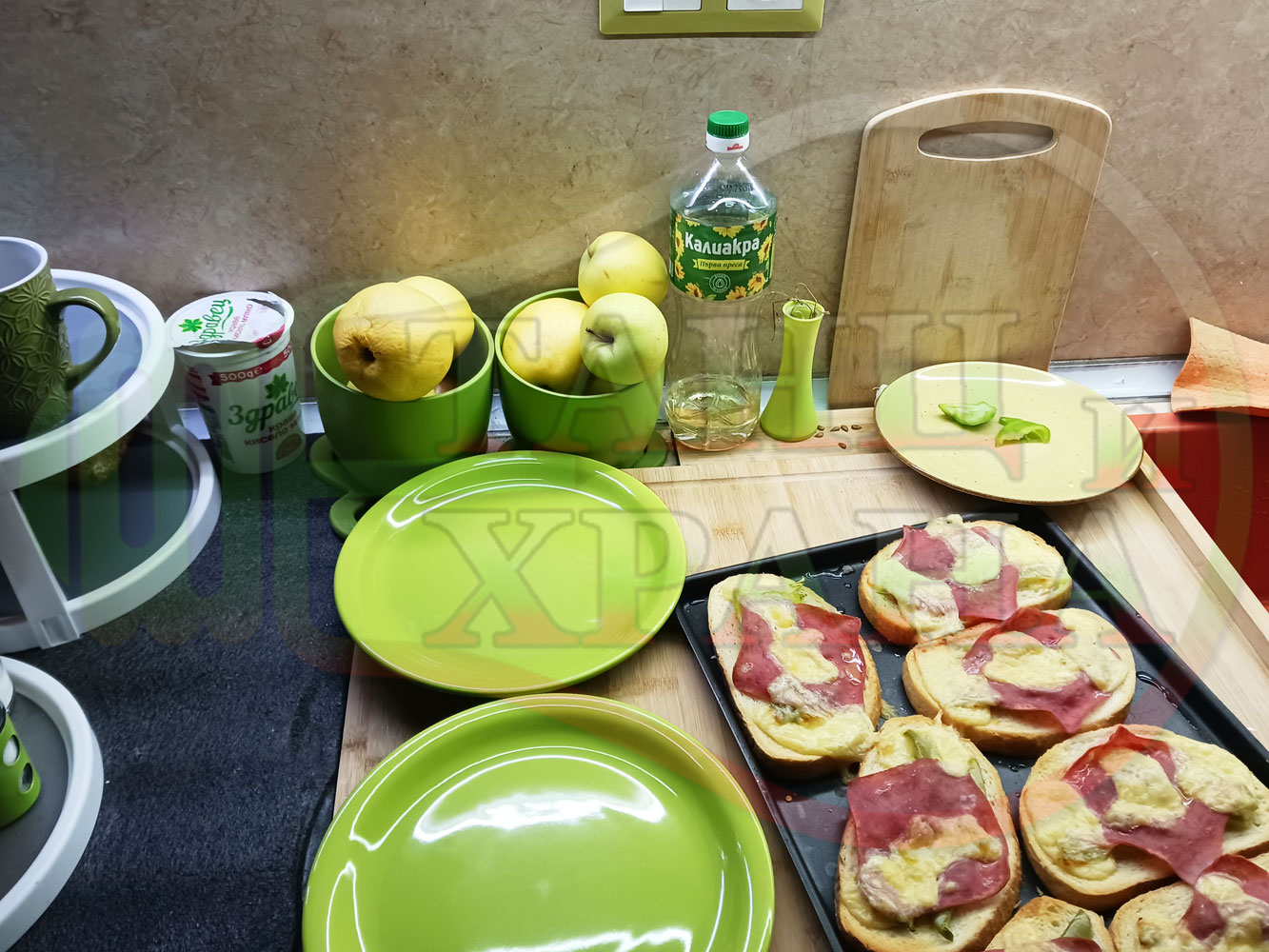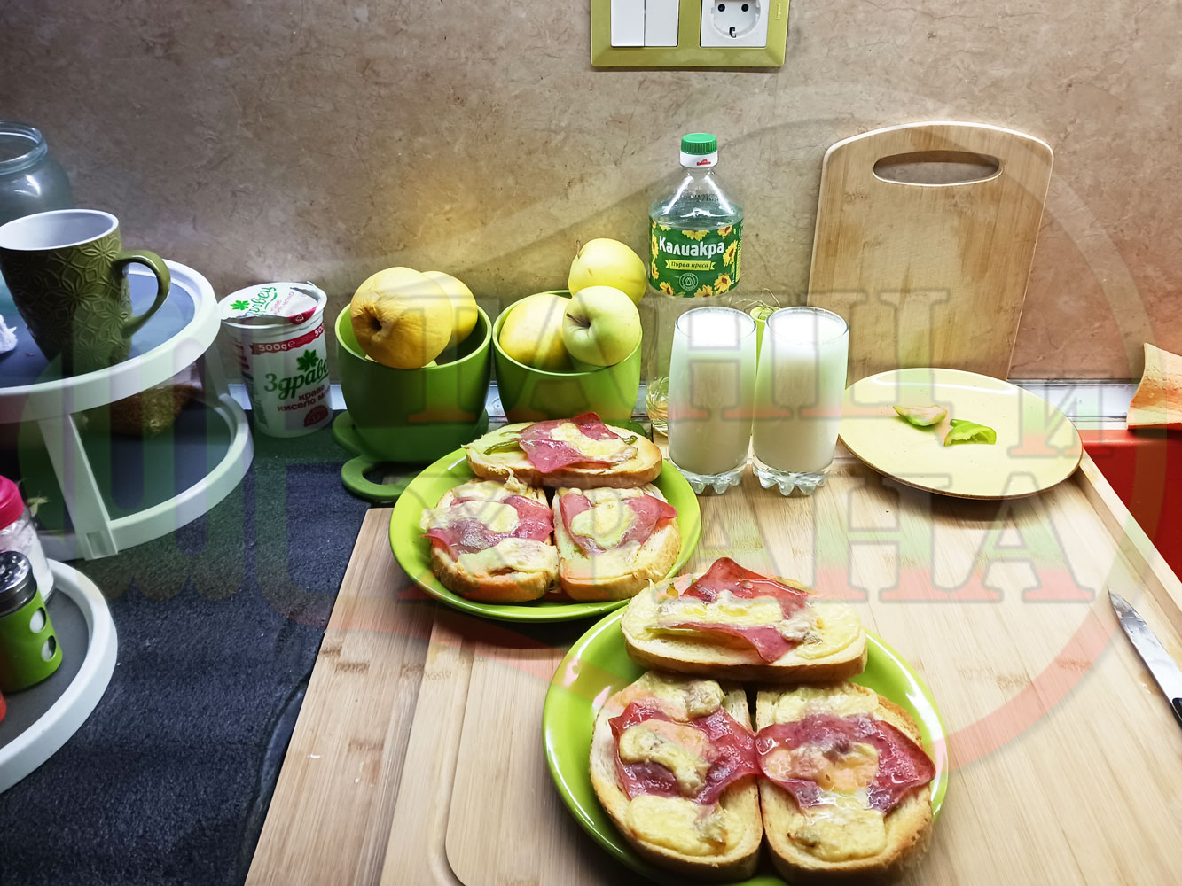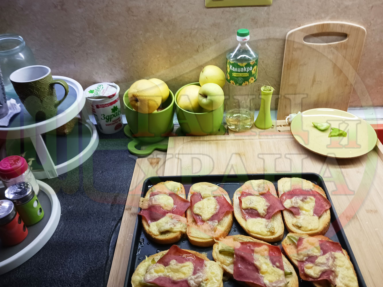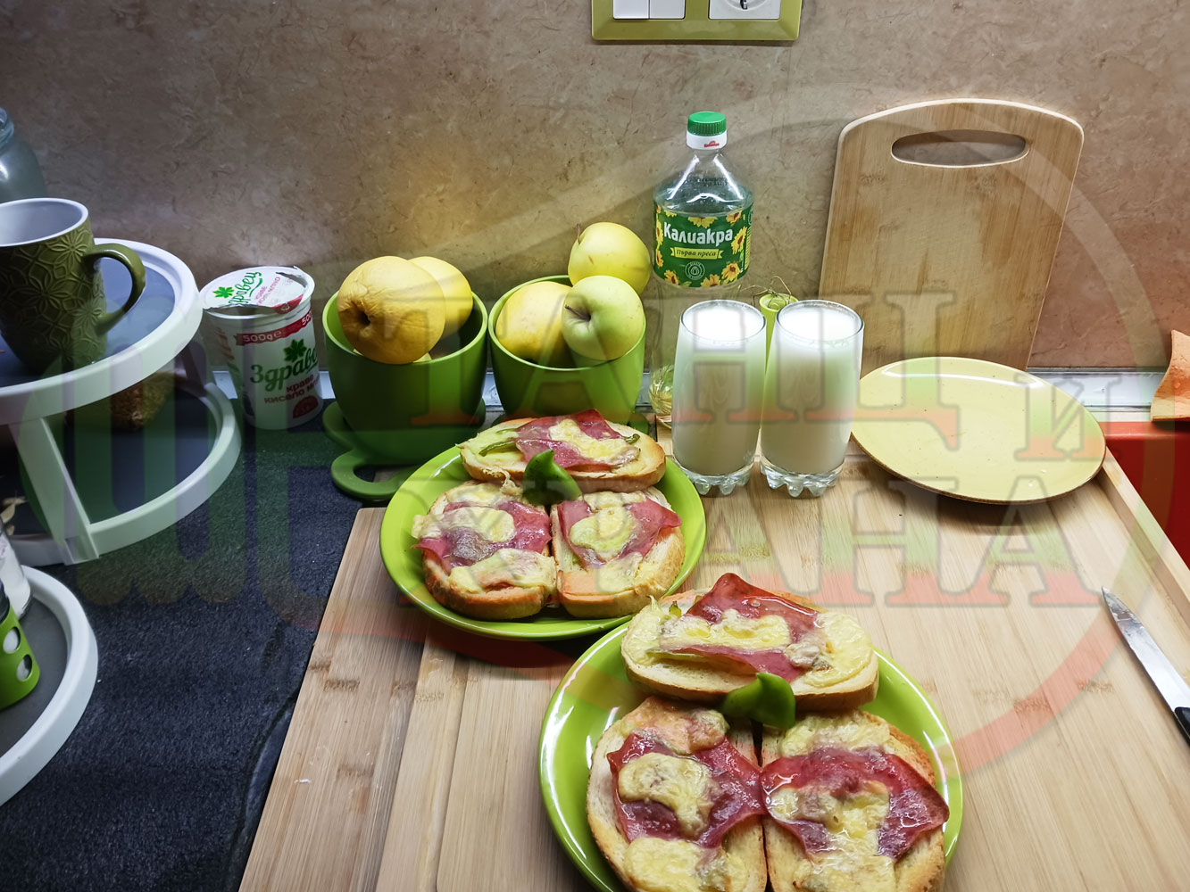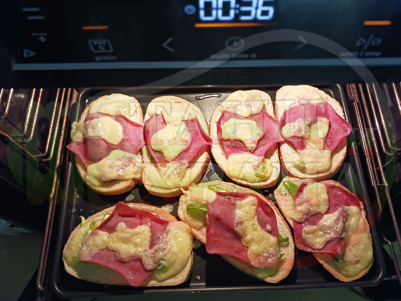 Български филийки "Шункови зеленочушкови кашкавалени" запечени на фурна с краве масло, зелени пресни чушки, шунка и млечен кашкавал